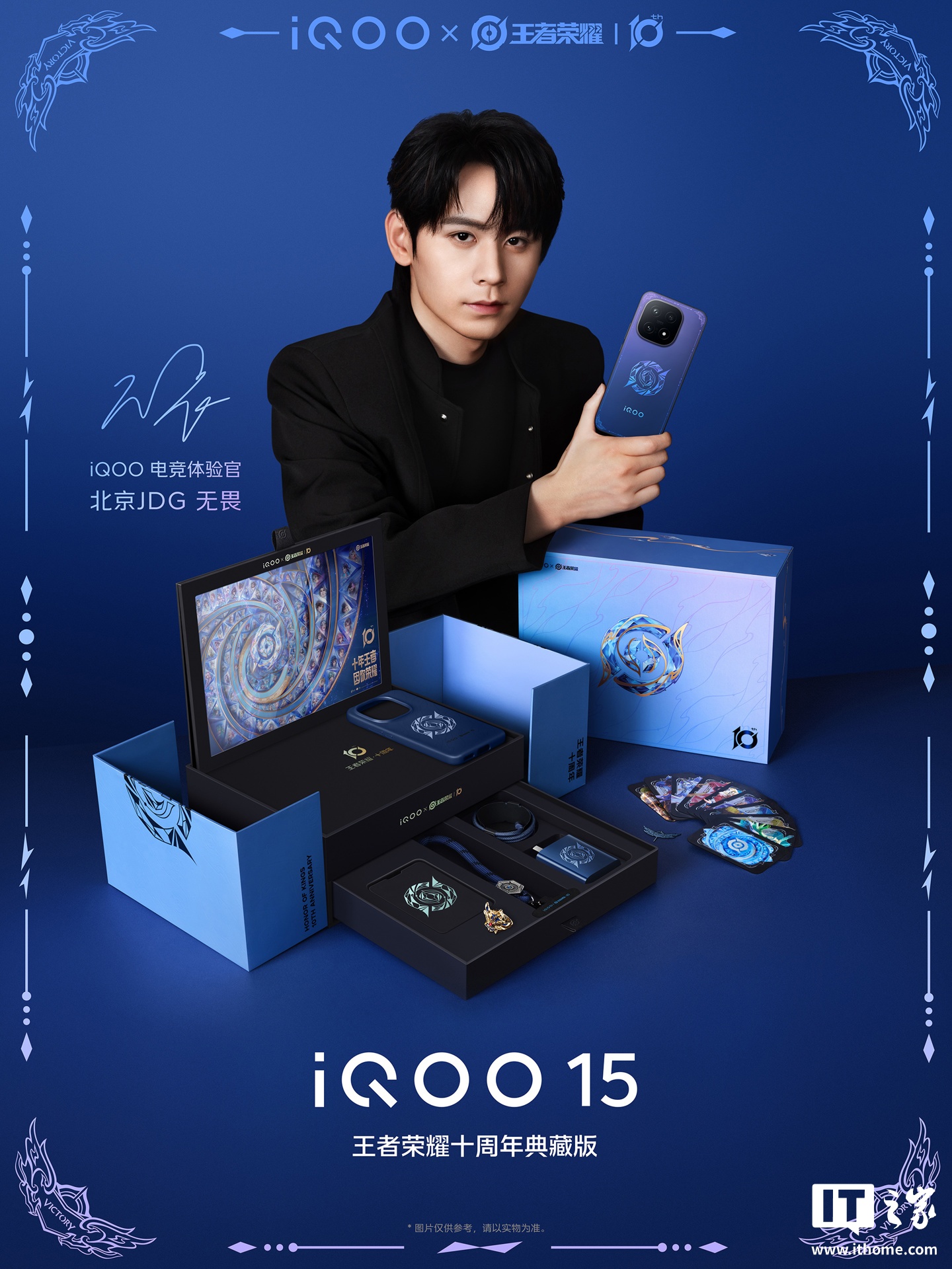 IT之家 10 月 18 日消息,iQOO 官方昨天发布微博,亮相 iQOO 15 手机王者荣耀十周年典藏版,联合王者荣耀团队定制外观、UI 等元素,将在 10 月 20 日晚 19 点限量发售。