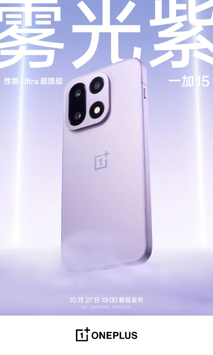一加 15 手机三款配色已经公布:原色沙丘、绝对黑、雾光紫。其中绝对黑行业首发「全哑丝绸玻璃」,3.7% 超低反射率;雾光紫行业首发「双维流光玻璃」,注入光敏材料,色彩随光而变。