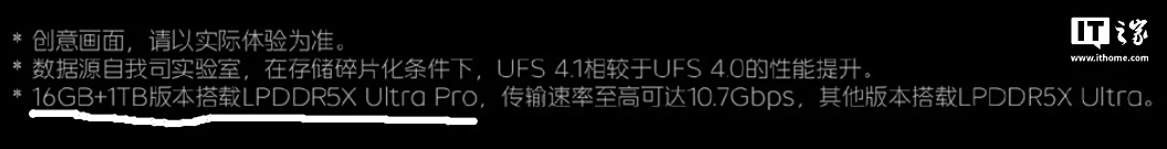 运行:LPDDR5X Ultra + UFS 4.1 组合 | 16GB+1TB 版本采用 LPDDR5X Ultra Pro