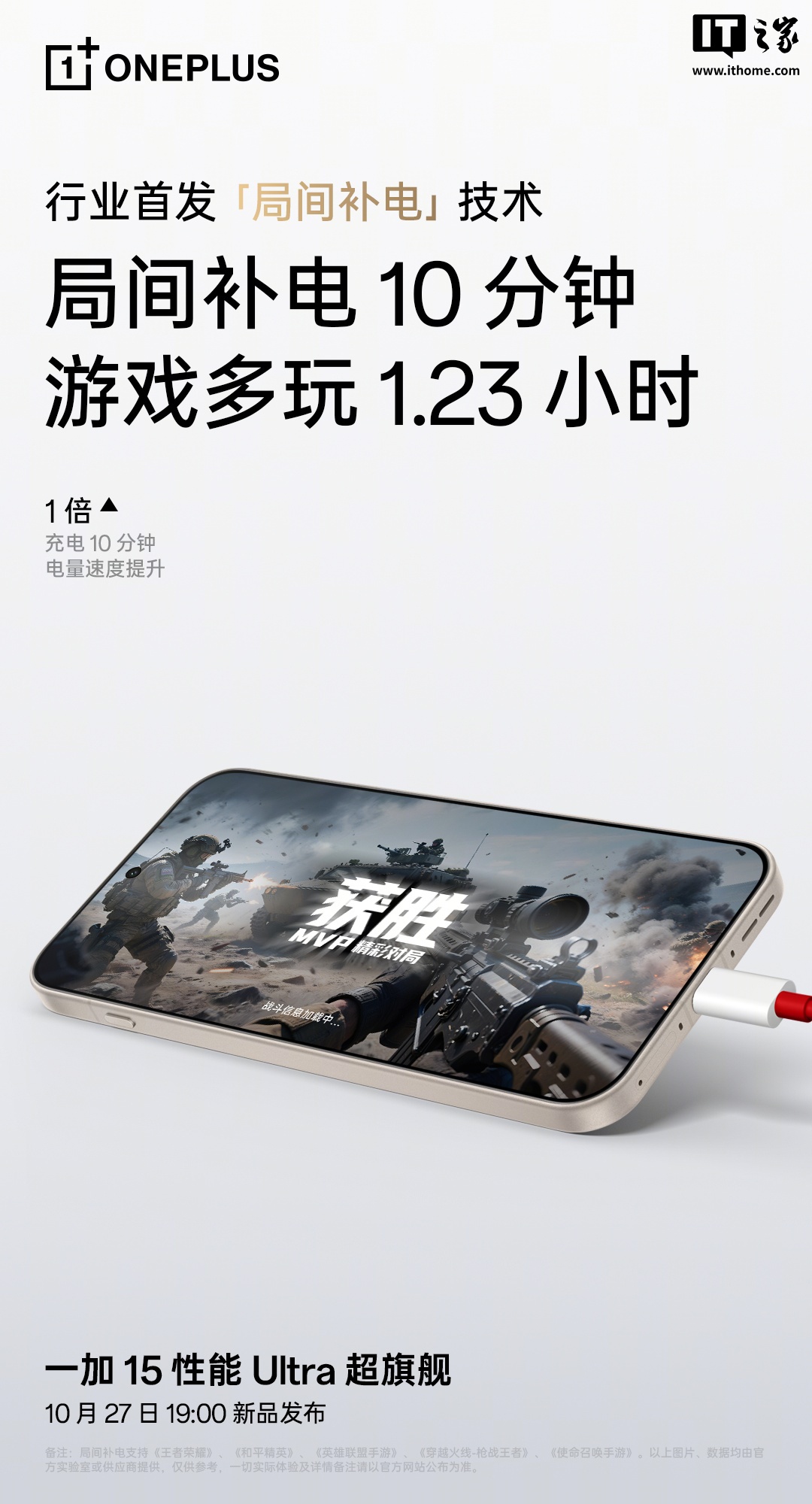 行业首发「局间补电」技术:局间休息 10 分钟充会电,能多玩 1.23 小时