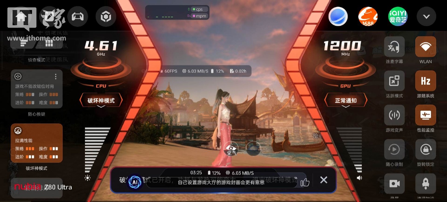 游戏性能模式,在均衡模式之外,还有觉醒模式,甚至,还有非常夸张的“破坏神模式”—— 解除所有温控限制,让处理器大核全开,完全榨干骁龙至尊版处理器。