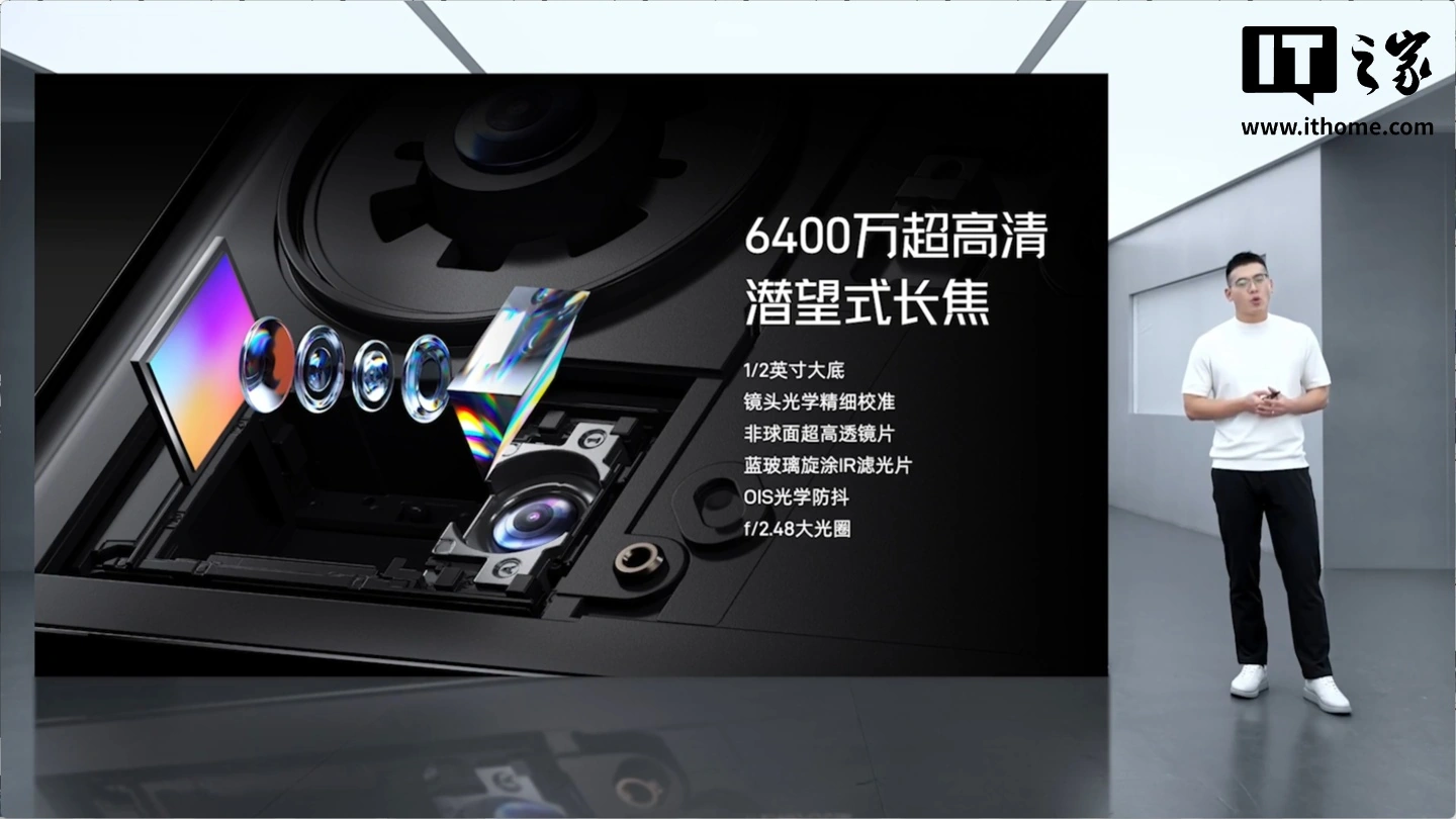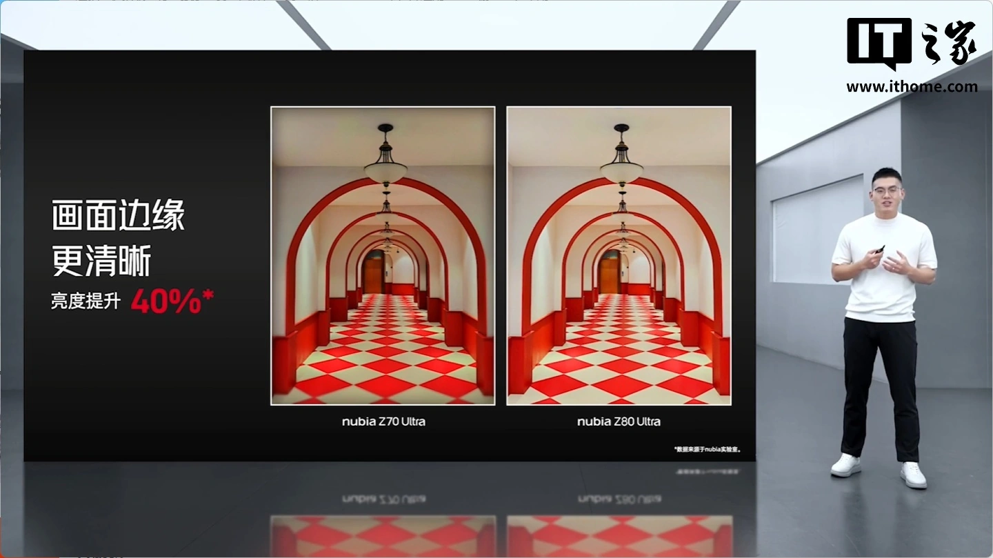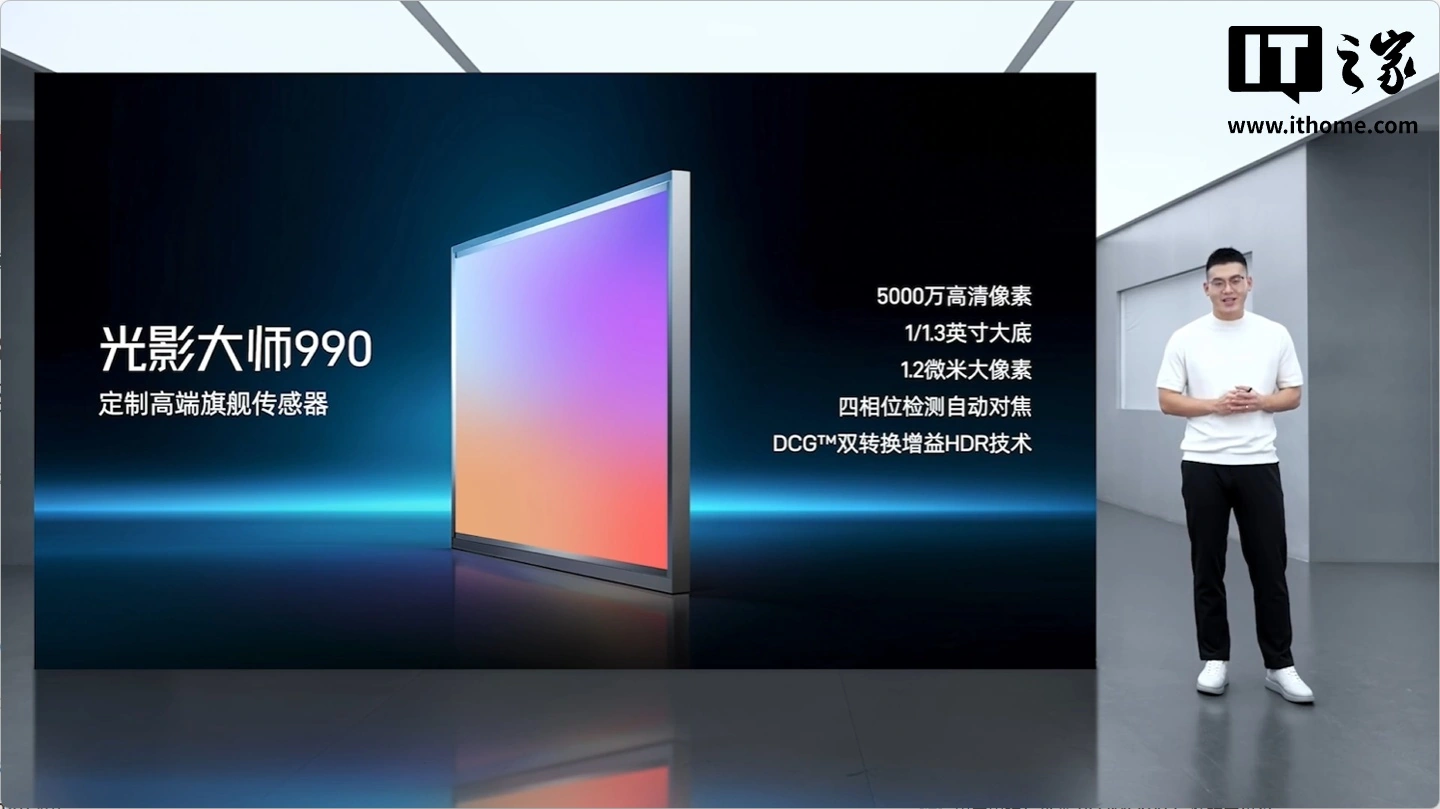据努比亚影像经理杨瑞现场介绍,这次 Z80 Ultra 搭载 Neo Master 大师光眸镜头,拥有第五代 35mm 定制光学系统,联合豪威定制光影大师 990 CMOS 传感器,尺寸为 1/1.3 英寸,配备 1.2 微米大像素,支持 DCG 双转换增益 HDR 技术。