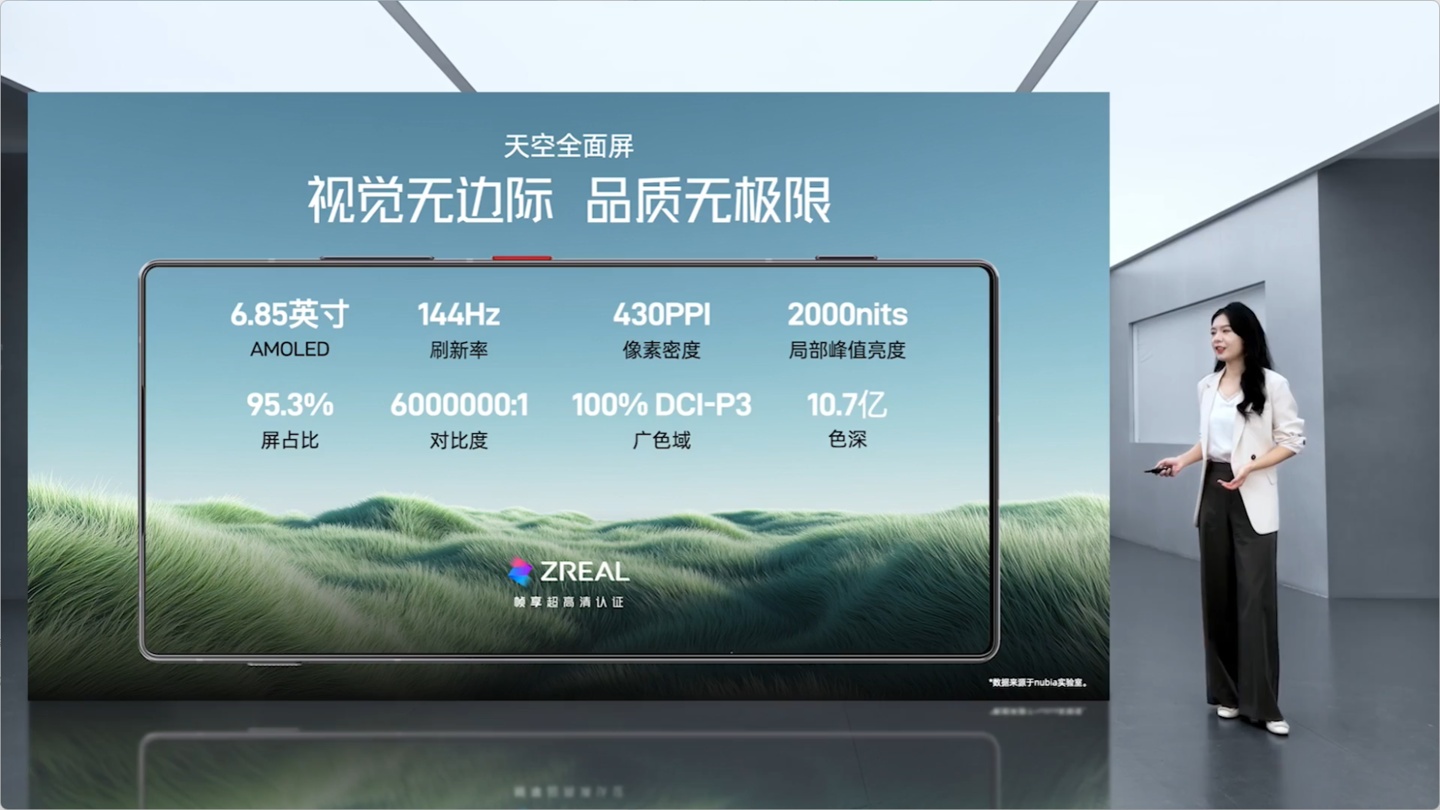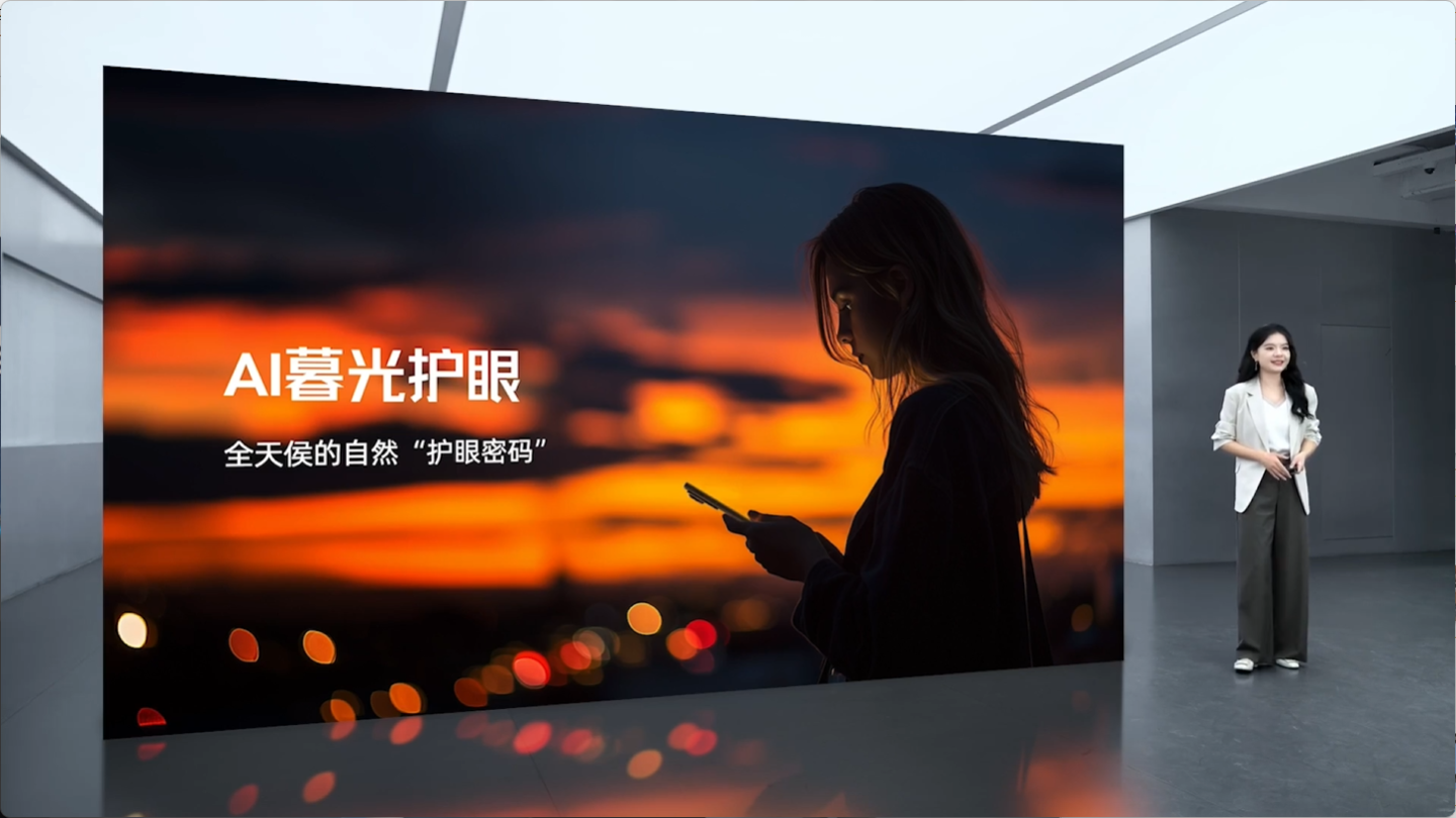屏幕方面,这次 Z80 Ultra 联合 BOE 联合定制天空全面屏,搭载 X10 屏下发光材料,功耗降低 10%,尺寸为 6.85 英寸,支持 144Hz 高刷,局部峰值亮度可达 2000 尼特,DCI-P3 色域达 100%,色深 10.7 亿,还配有“AI 暮光护眼”,根据不同地区日出日落时间自动调整屏幕色温等参数。