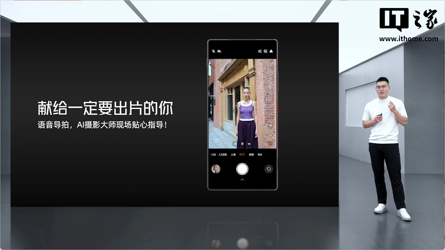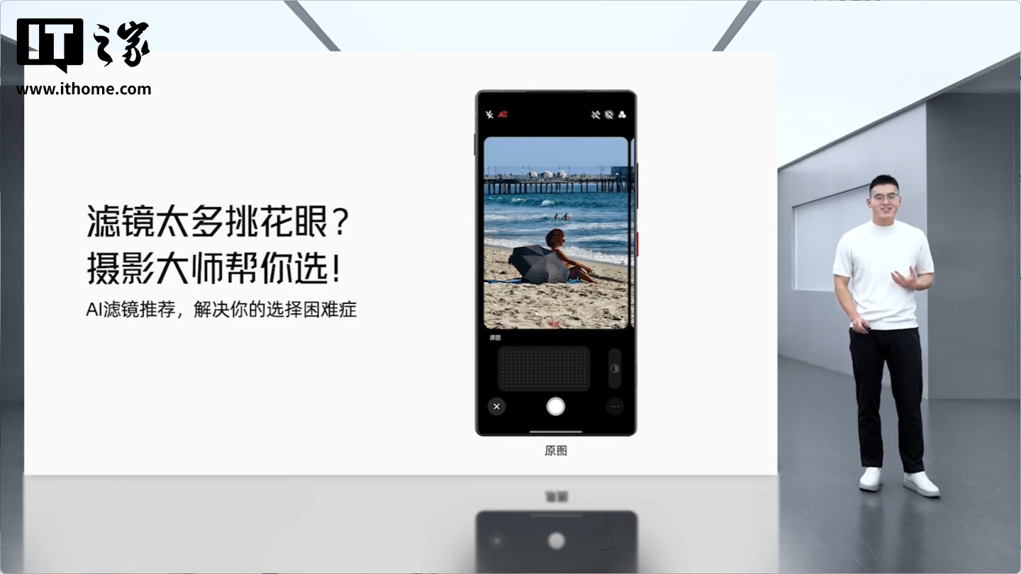 软件层面,这台手机还拥有“AI 摄影大师”语音导拍系统,可在相机界面打开,让用户和拍摄对象直接听到动作、角度指导,“手把手”教你拍出好照片,还支持 AI 滤镜推荐,让软件结合实际场景自动选择滤镜,还可自行定制滤镜。