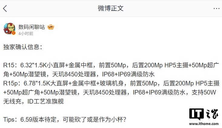 该博主还提到,该系列的 6.59 英寸版本待定,“可能砍了或是作为小杯?”。