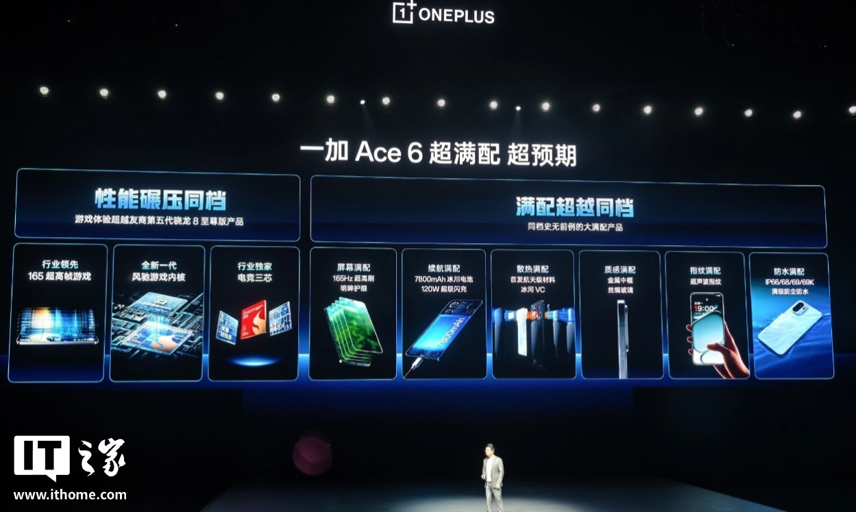 IT之家 10 月 27 日消息,一加 Ace 6 手机今晚发布,搭载 165Hz 高刷屏及骁龙 8 至尊版处理器,2599 元起。