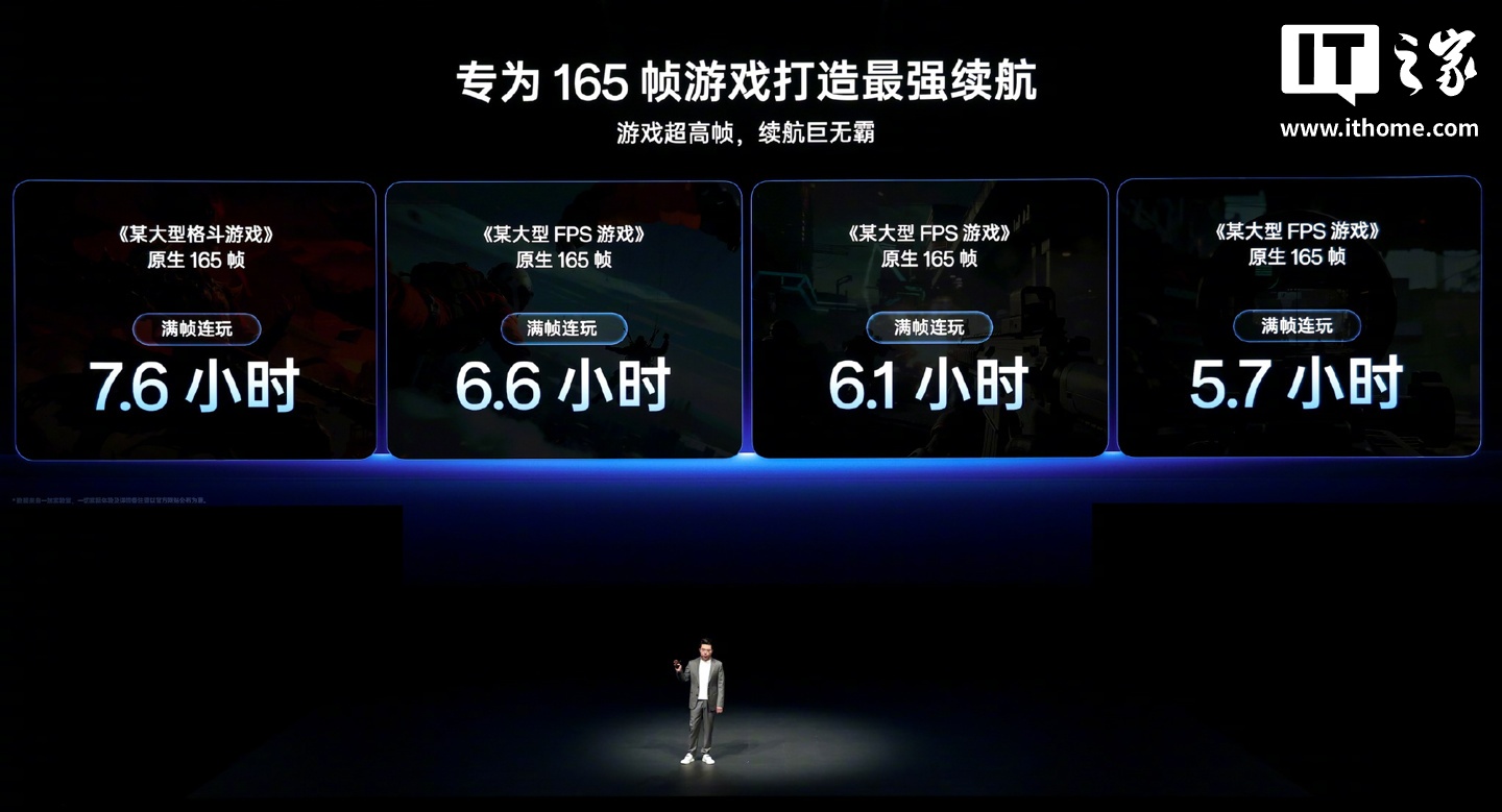 《某大型 FPS 游戏 B》原生 165 帧满帧连玩 6.1 小时;
