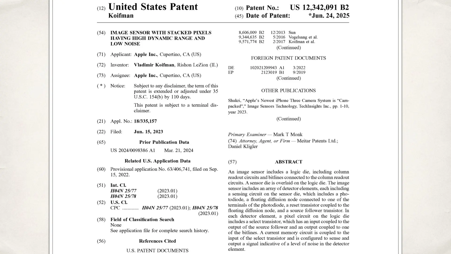 消息称苹果在该领域的布局早已开始。公司于 2025 年 7 月提交的一项图像传感器专利,就详细描述了 LOFIC 技术,其采用堆栈式设计,包含专用的光捕捉层和处理层,能实现实时降噪。