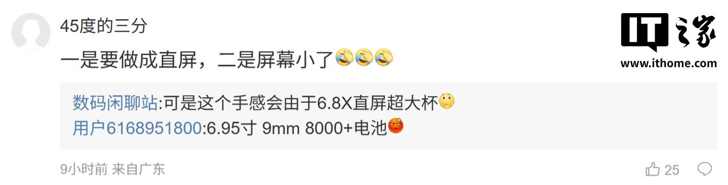 ”,博主回复道:“看参数差不多,都是 22nm + 新 LOFIC”;另一名用户则表示:“一是要做成直屏,二是屏幕小了