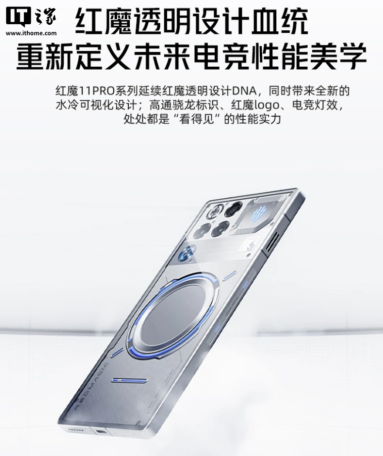 IT之家 10 月 30 日消息,红魔 11 Pro+ 手机 16GB+1TB 版本「氘锋透明银翼」配色今日正式开售,该机行业首发风水双冷散热技术、京东方 X10 全新屏下发光材料,搭载第五代骁龙 8 至尊版芯片,并配备 7500mAh 电池,售价 6999 元