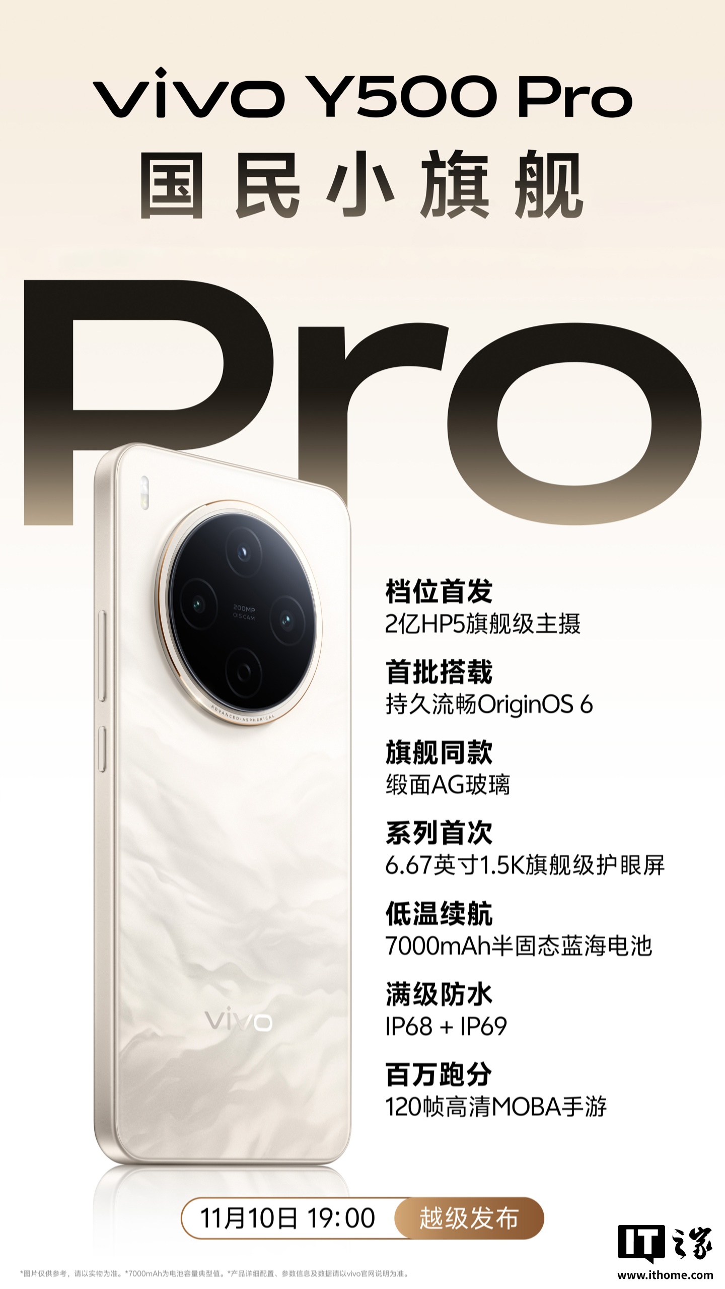 IT之家 11 月 4 日消息,vivo Y500 Pro 官宣将于 11 月 10 日 19:00 发布,slogan 为“国民小旗舰”,在该价位首发搭载 2 亿像素的三星 HP5 旗舰级主摄。