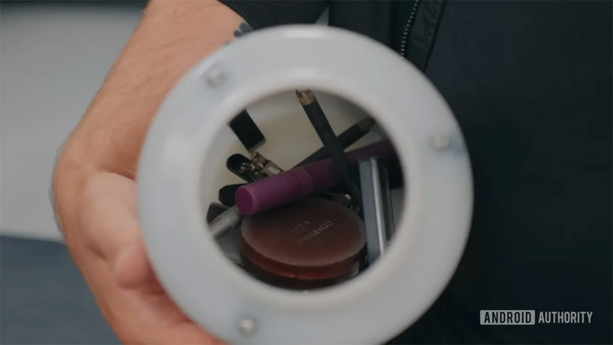 随后映入眼帘的便是“刮擦机器人”,它可以自动使用加重的砂纸反复摩擦玻璃,对比之下,友商的玻璃在 1kg 压力下就被划伤,而三星 Galaxy S24 Ultra 使用的大猩猩 Armor 玻璃在 4kg 压力下依然没有痕迹。