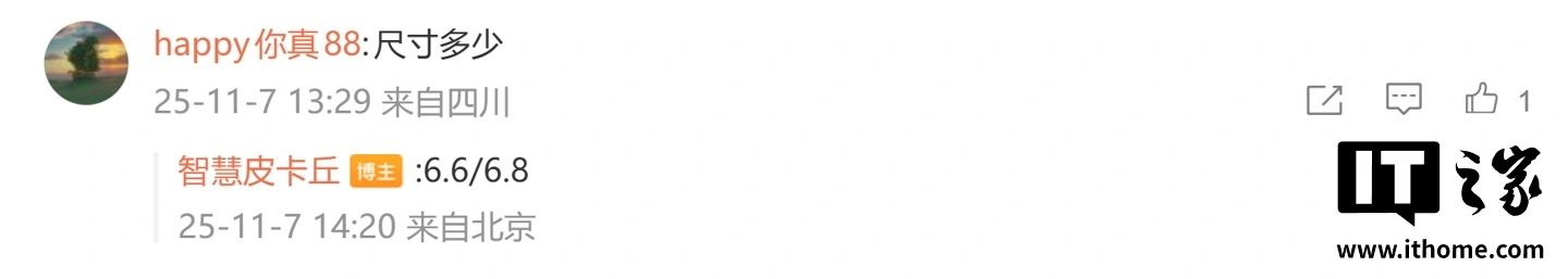 后续有用户在评论区询问:“尺寸多少”,博主回复道:“6.6/6.8”;另一名用户则询问道:“这个月能见到不”,博主则回复道:“500”。