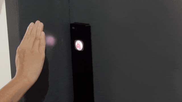 官方数据显示其身高识别范围为 1.1 米至 2 米,简单演示,当我们走到门前约 0.5-1 米范围时,雷达便会唤醒人脸识别模组,几乎在我们站定在门前的瞬间,身份验证就已经完成,锁舌自动收回,门轻轻弹开,真正实现了“解放双手”的无感通行。