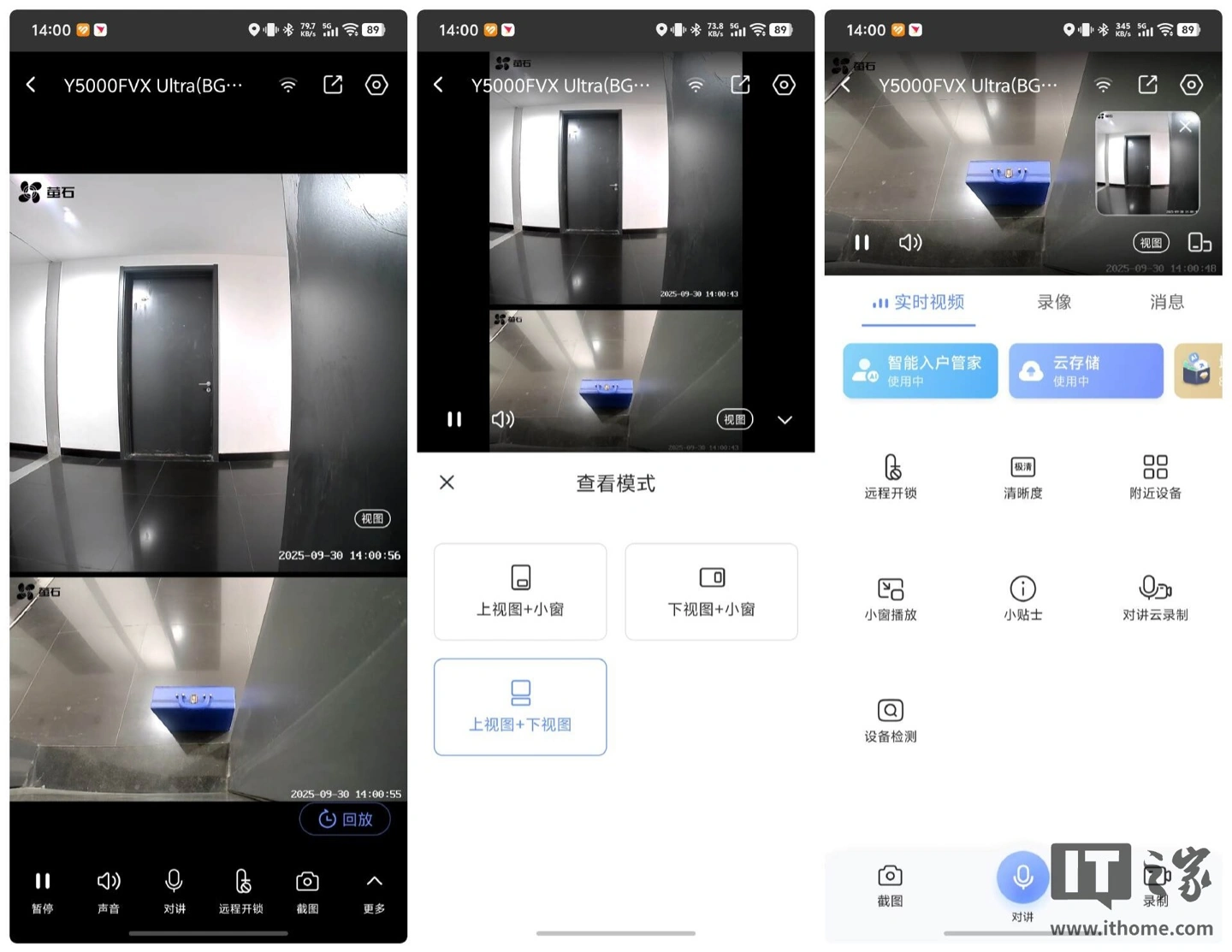 这也是家门口的“实时监控中心”—— 实用价值非常高,当有访客按门铃,或门外有异常逗留时,屏幕会自动亮起,清晰地显示门外双摄像头的实时画面。
