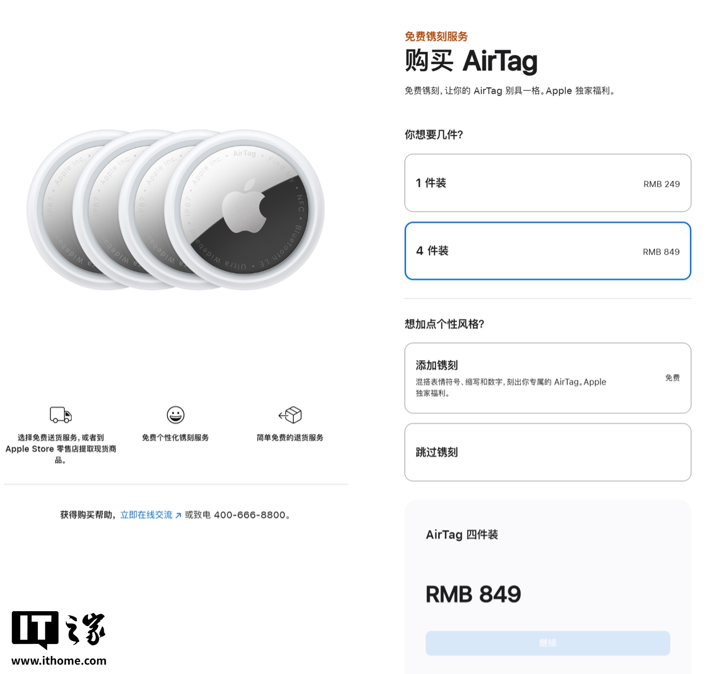文章来源于互联网:苹果美国官网闹乌龙,4 件装 AirTag 与单个装同价仅 29 美元