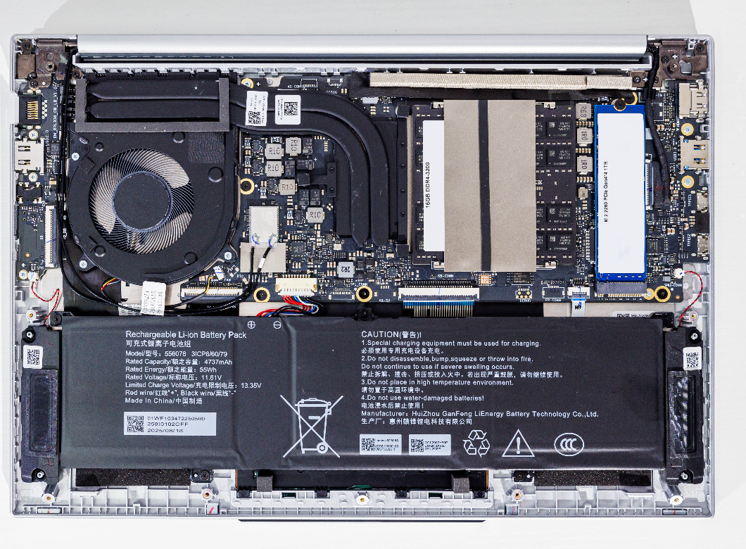 慧天 X5 的“不妥协”还体现在内部,许多追求极致轻薄的笔记本已将内存“板载”,慧天 X5 依旧采用了插槽式内存与 M.2 接口 SSD 的设计,这也意味着设备拥有更易于维护的特性,以及通过后续升级带来的更长使用周期。