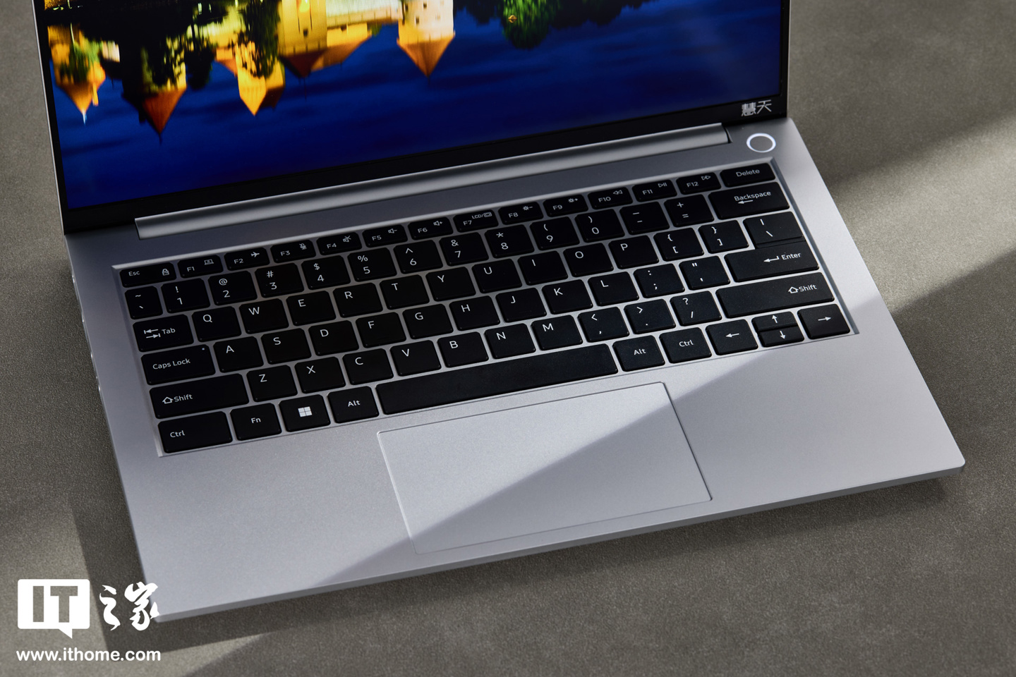 视线来到 C 面,慧天 X5 采用了手感稳健的孤岛式键盘布局;键盘下方的触控板面积颇为可观,反应跟手。