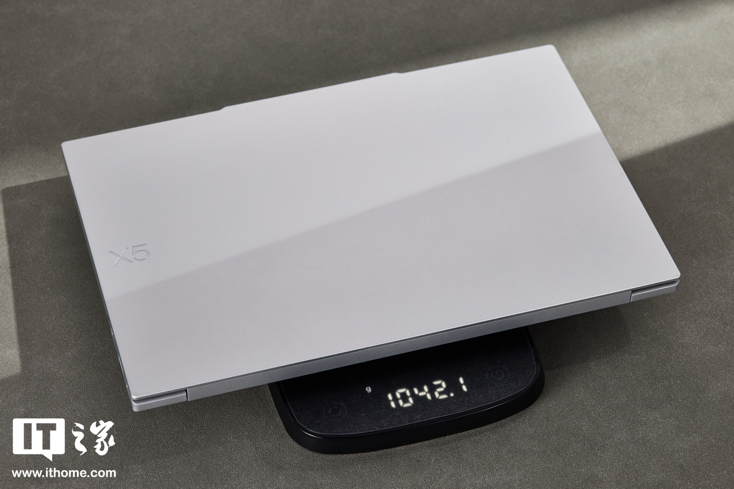 传统商用笔记本电脑给人的刻板印象,往往与“厚重”、“沉闷”、“设计保守”等词汇牢牢绑定。然而,慧天 X5 给人的第一印象,首先是在“轻”字上做到了极致。根据 IT 之家实测,慧天 X5 的机身重量还不到 1.1KG,实测机身最薄处的厚度也仅有 15.8mm。