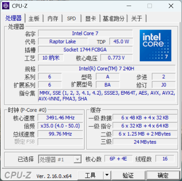 为了量化这颗标压处理器在慧天 X5 轻薄机身内的性能释放,IT之家进行了一系列基准测试。我们首先通过 CPU-Z 和 Cinebench R23 来评估处理器的单核及多核性能。