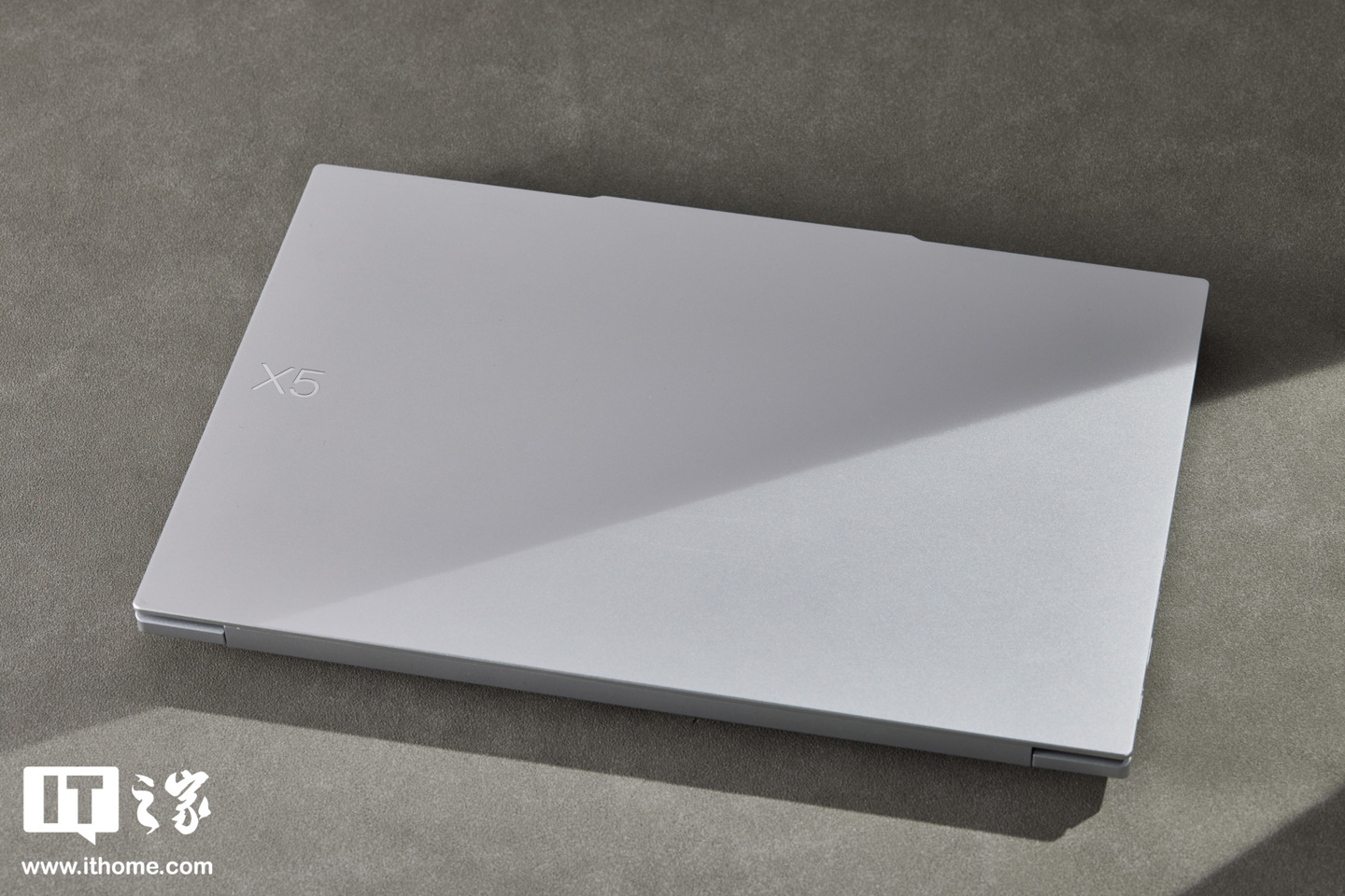 整机采用“太空银”配色的金属机身,A 面除了简洁的“X5”高亮标识外再无他物,呈现出一种简洁、大气且富有专业质感的商务格调。