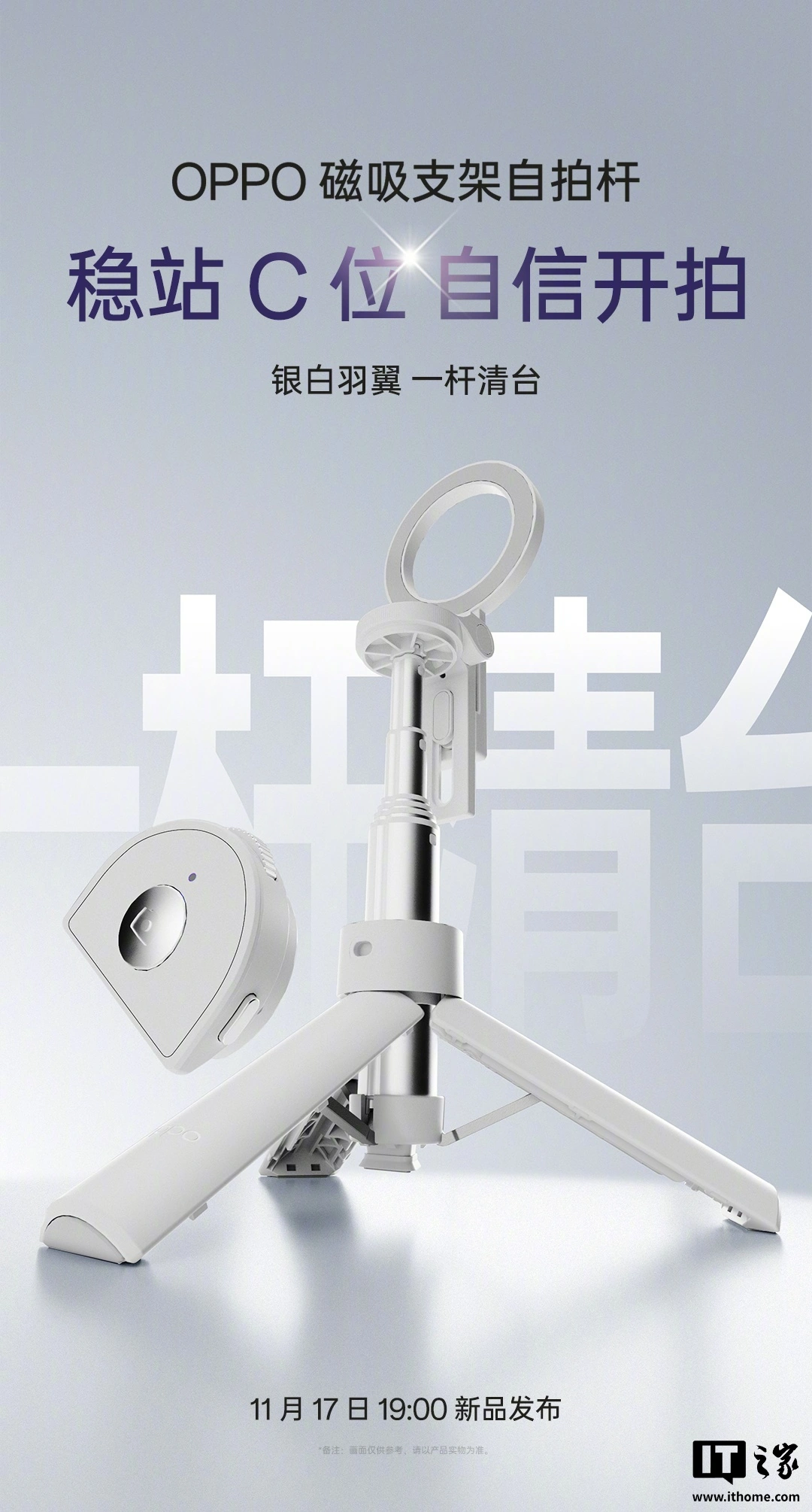 据 OPPO 官方今日预热,Reno15 Pro 手机还拥有系列直播“搭子”,含 OPPO 磁吸支架自拍杆、OPPO 磁吸小光环补光灯等。