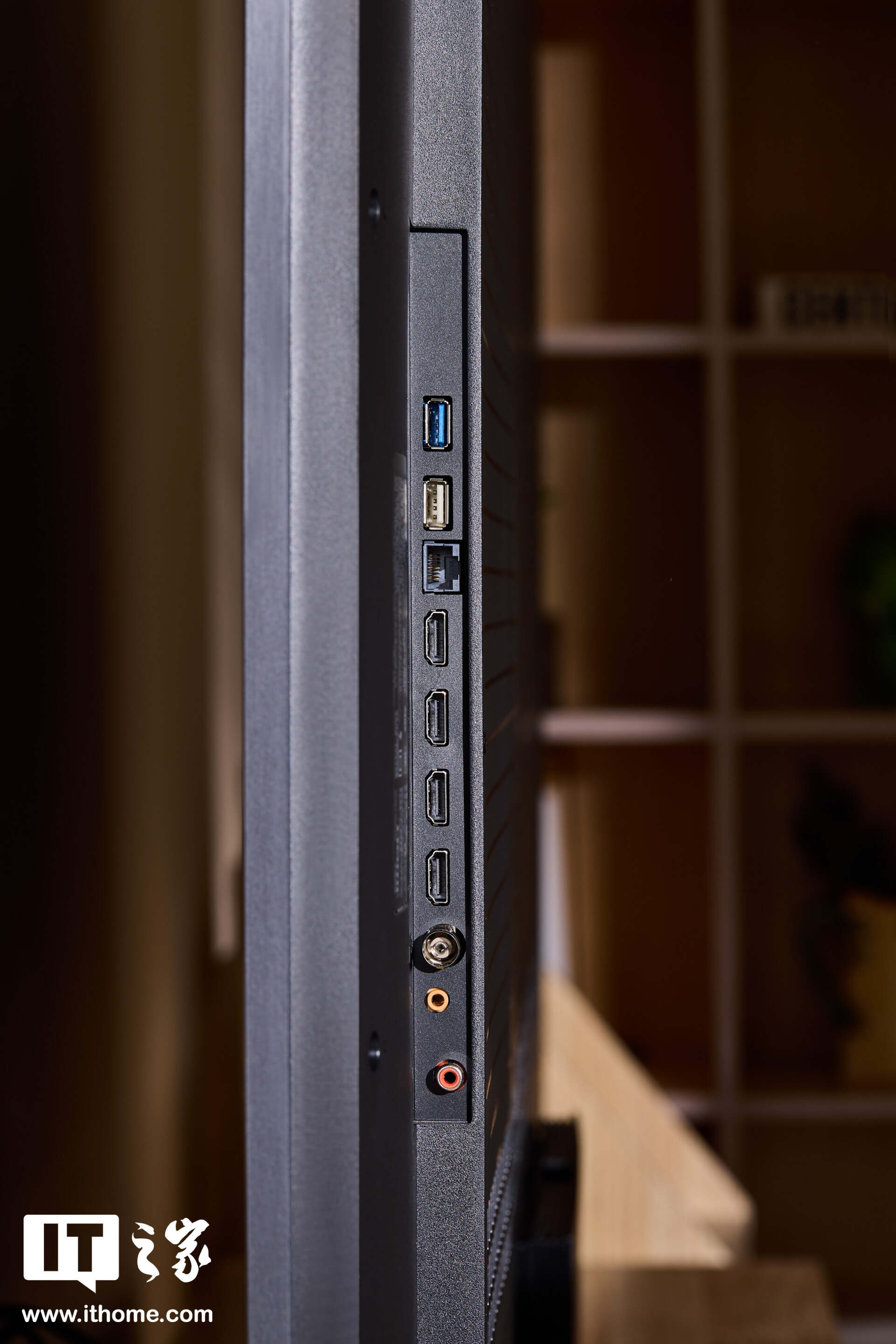 它的背板设计同样简洁,接口布局合理,包括 4 个满血的 HDMI2.1、1 个 USB2.0、1 个 USB3.0 等。