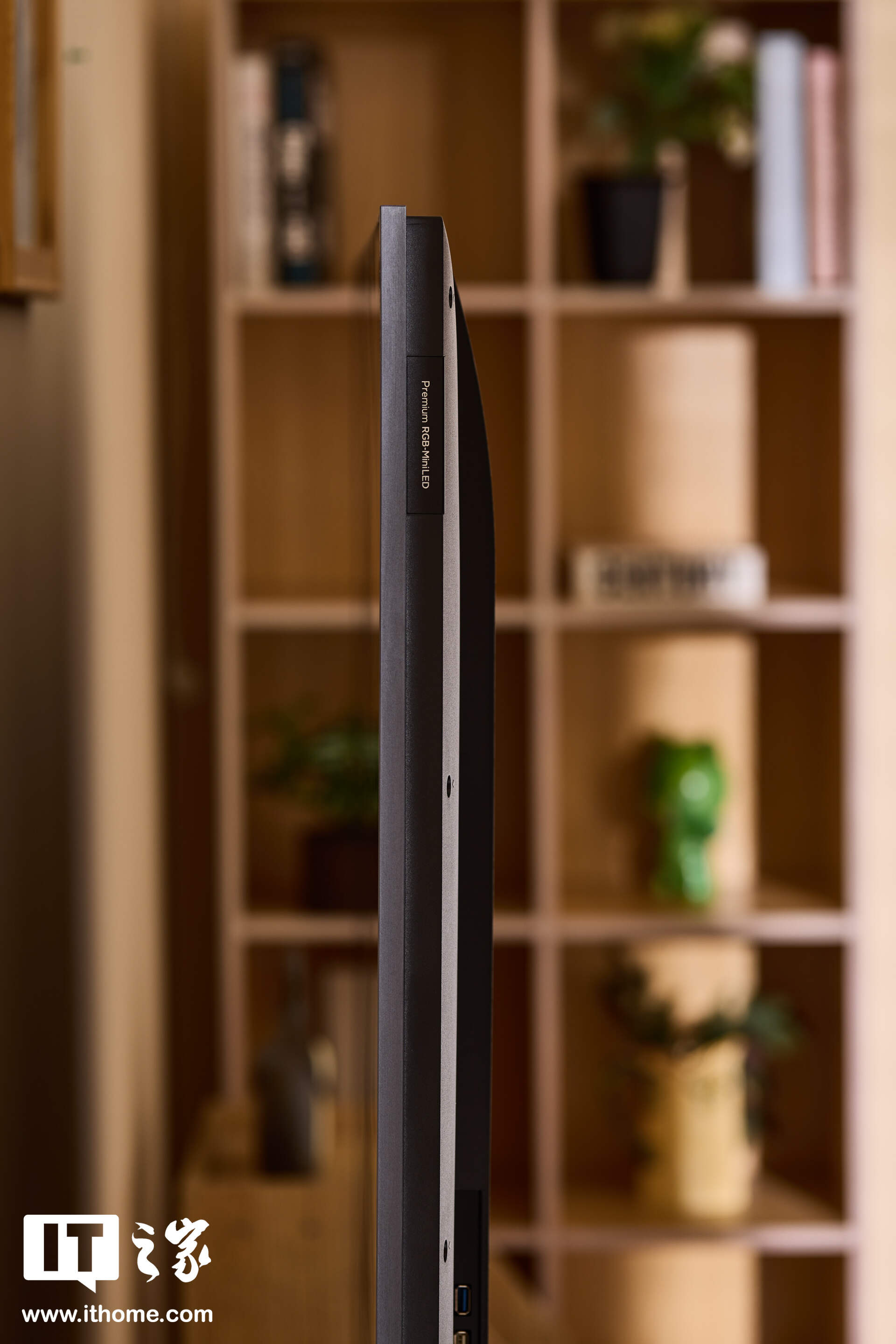 总的来说,Q9M 的外观是一种内敛的、克制的“超窄超薄向”设计,息屏时,它能安静地融入家居环境,而当你点亮屏幕时,它又能瞬间成为客厅的绝对焦点。