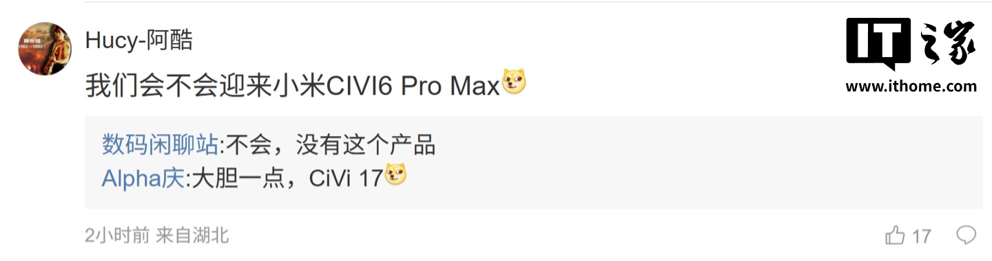 ”;另一名用户则询问道:“我们会不会迎来小米 CIVI6 Pro Max