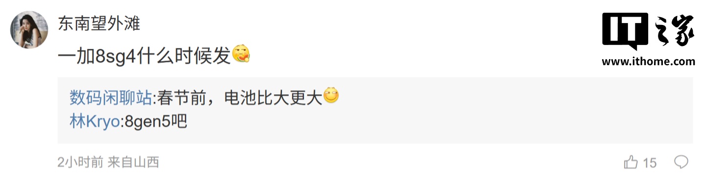 后续有用户在评论区询问:“一加 8sg4 什么时候发