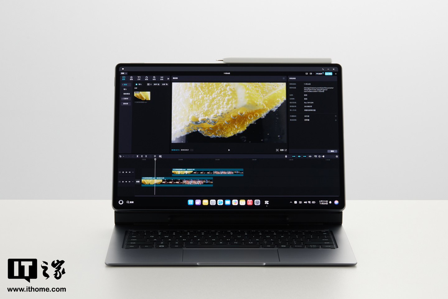 形态设计上,华为 MatePad Edge 接上全新的华为星跃悬浮键盘,它就是一台标准的轻薄笔记本,从侧面看,平板悬浮于键盘之上。配合全新发布的华为星跃悬浮键盘,可呈现标准笔记本形态。键盘支持无极悬停与最大开合角度调整,拥有 1.8mm 高键程及全域压力感应触控板,还原了传统 PC 的输入与操控体验。