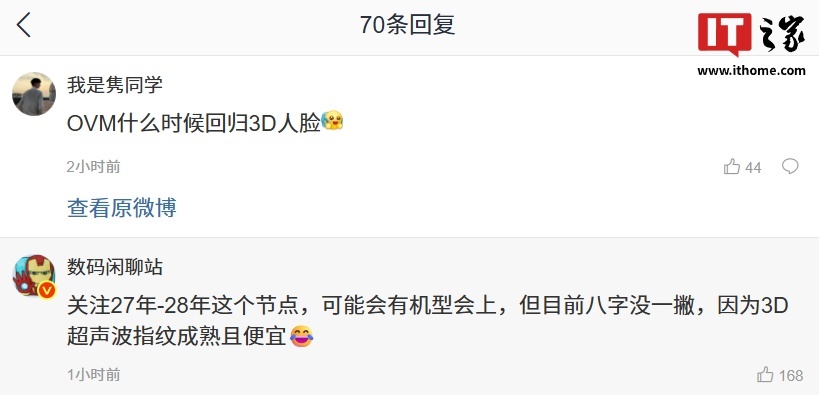 据IT之家此前报道,有消息称 OVM(OPPO、vivo、小米)在 27 年-28 年这个节点,可能会有机型会上,但目前八字没一撇,因为 3D 超声波指纹成熟且便宜。