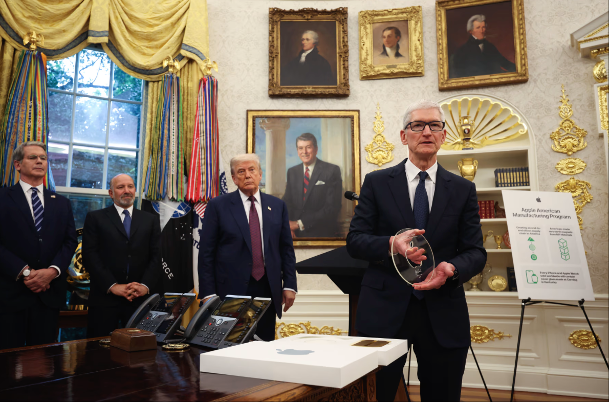 文章来源于互联网:凤凰网-苹果库克给特朗普“送礼”:康宁玻璃+24K金底座,美国制造