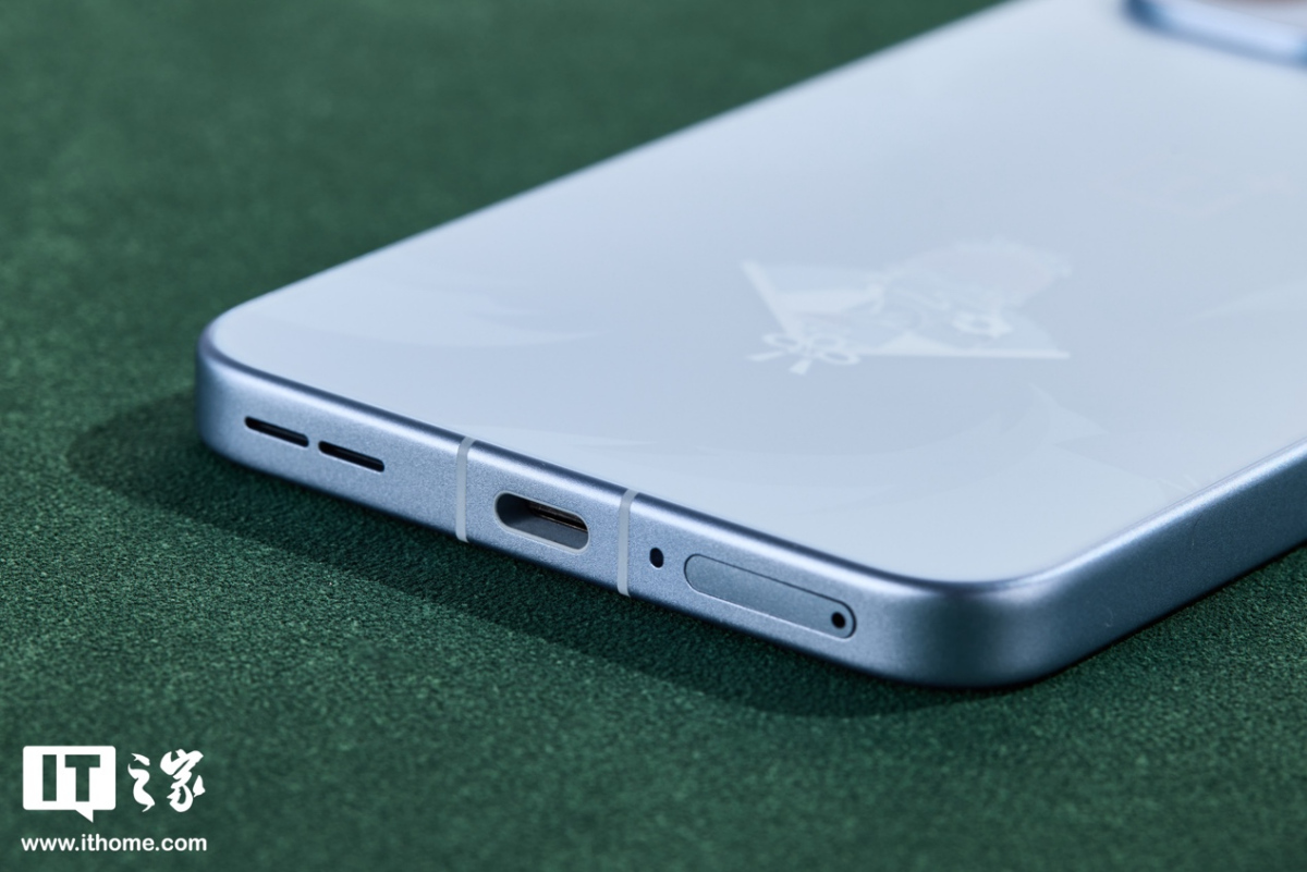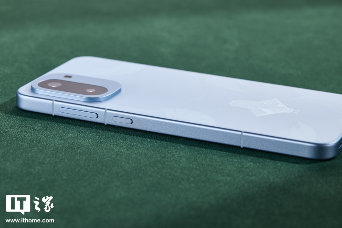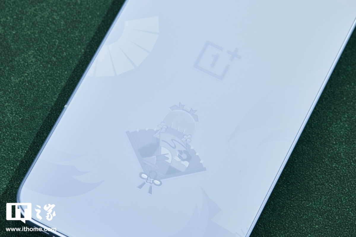 一加 Ace 6T 原神神里绫华定制机机身采用「雪霁蓝」主题配色,低饱和度的冰蓝色搭配细腻的玻璃材质,手感非常光滑。后壳底部印有绫华头像 + 舞扇的图案装饰,四周还有多组拼接图案,背盖图案在光线下能够呈现如皎月清霜般的光泽,还原绫华月下剑舞般的灵动光影,细细品味亦能感受出神里绫华的端庄气质。