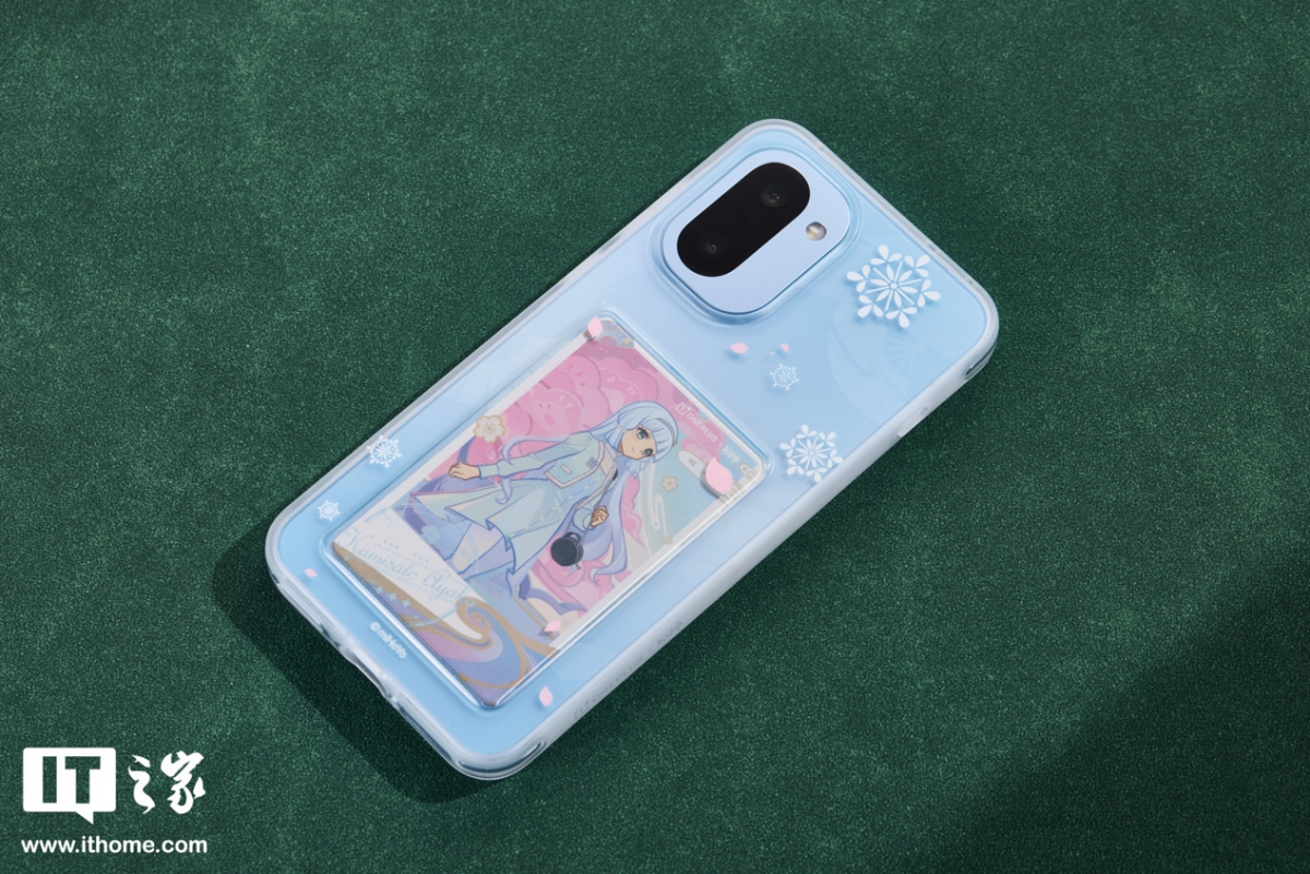 定制手机壳为透明硬壳材质,边框四周采用加厚防护设计,背部印有白色雪花图案装饰,内侧设有专属角色卡“展示柜”,将角色卡嵌入其中更具个性。