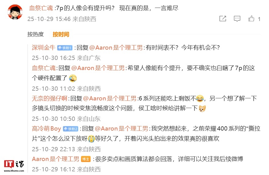 IT之家 12 月 8 日消息,荣耀影像系统专家 @Aaron是个理工男 今日发文回应了 Magic7 系列手机的升级计划:当前按照 1 月上旬排期会更新,包括基础维度的全系长焦清晰度 / 对比度改善、白平衡升级,以及追色和前后置胶片风格。