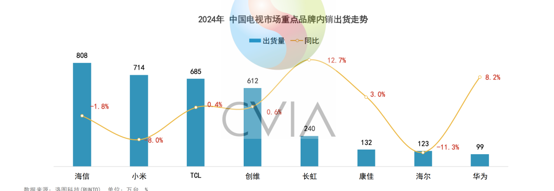 另外,这还是个高度固化、垄断的市场。海信、小米、TCL三家合计占据约61.4%的市场份额,留给其他数十个品牌的空间极为狭窄。