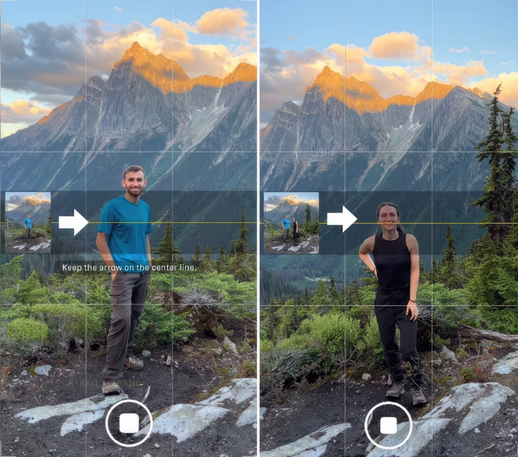 无需AI,无需复杂的相机功能,只是对简单问题的聪明解决方案。全景模式在90%的情况下都能有效工作,作为Pixel的“Add Me”功能的可靠替代方案。不过,它也有一些限制。除了潜在的拼接问题,你拍摄的照片必须是横向的(因为全景照片是横向记录的)。画面中的人物不能移动太多,否则会影响拼接——这意味着你不能在人群中使用此功能;背景几乎总是需要保持静态。全景模式也仅适用于从左到右的方向,这意味着摄影师只能在人物的右侧拍摄。不能在左侧,甚至不能在他们身后。相比于花$799购买新手机,这些限制显得微不足道。我预计再过一年,可能会有人开发出类似Pixel的“Add Me”功能的相机应用或滤镜(我在等你,Snapchat)。在此之前,就使用全景模式吧,我保证没有人会发现差异。