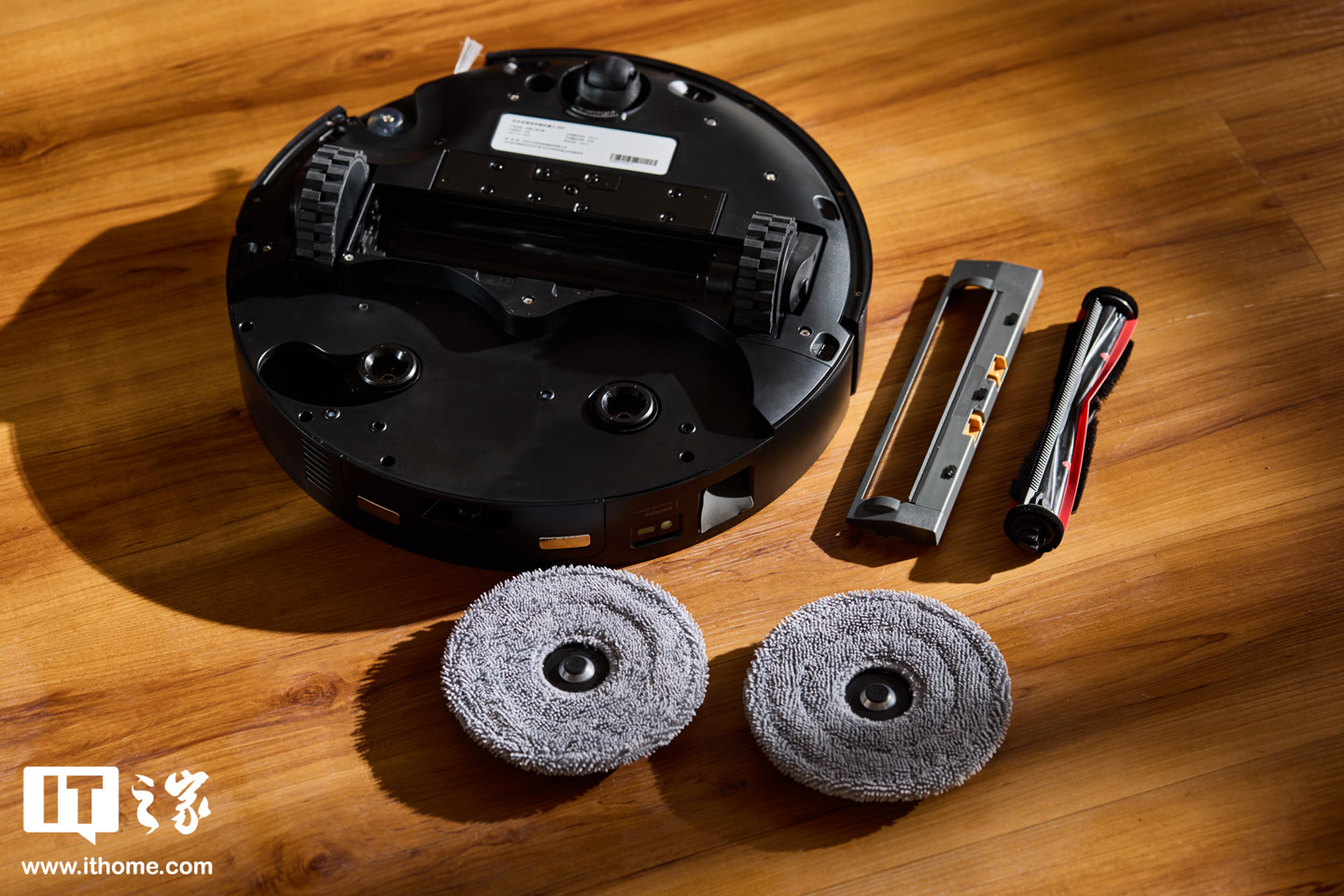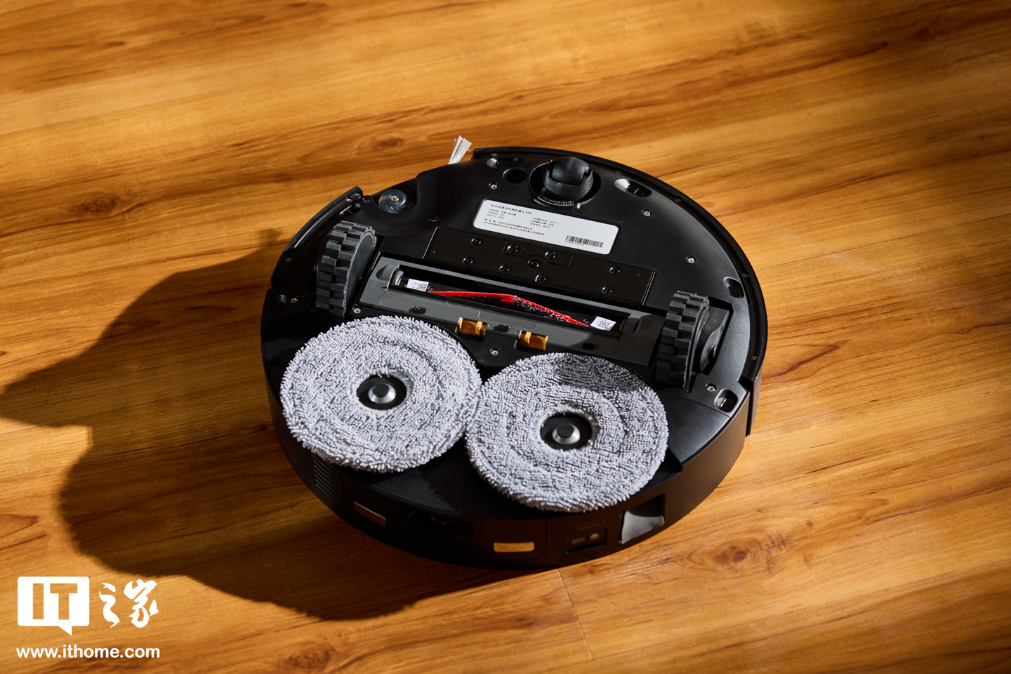 在拖布方面,石头 G30 Space 采用了双圆盘拖布设计,以 200 转 / 分钟的双旋速度擦地,支持伸缩和升降,还支持拖布的自动拆卸和安装。