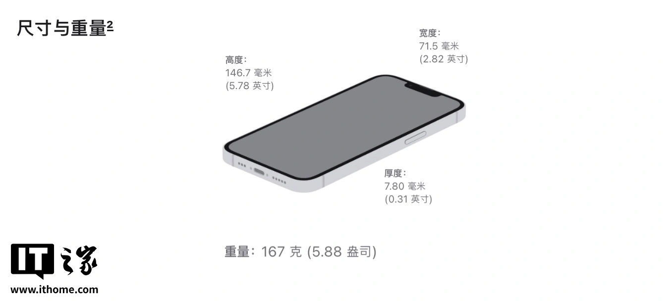 iPhone 16e 沿用了 iPhone 14/15 系列手机元素设计,使用铝合金中框,配备“操作按钮”,但没有“相机控制”按钮,手机重量 167 克,相比 iPhone 16 轻了 3 克。