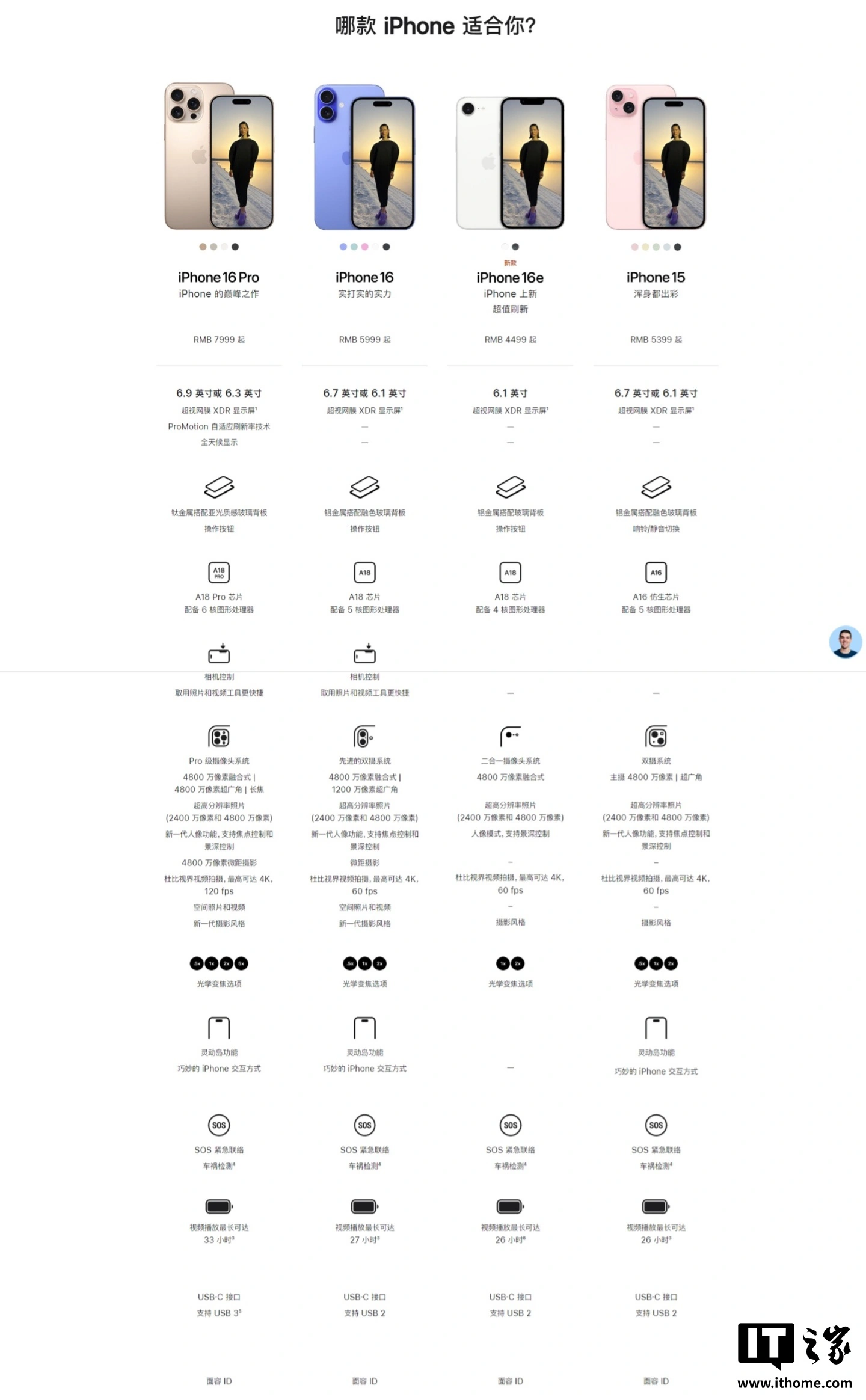 该机搭载 A18 处理器和 C1 基带(国行双实体 SIM 卡),号称为苹果 Apple 智能做准备。