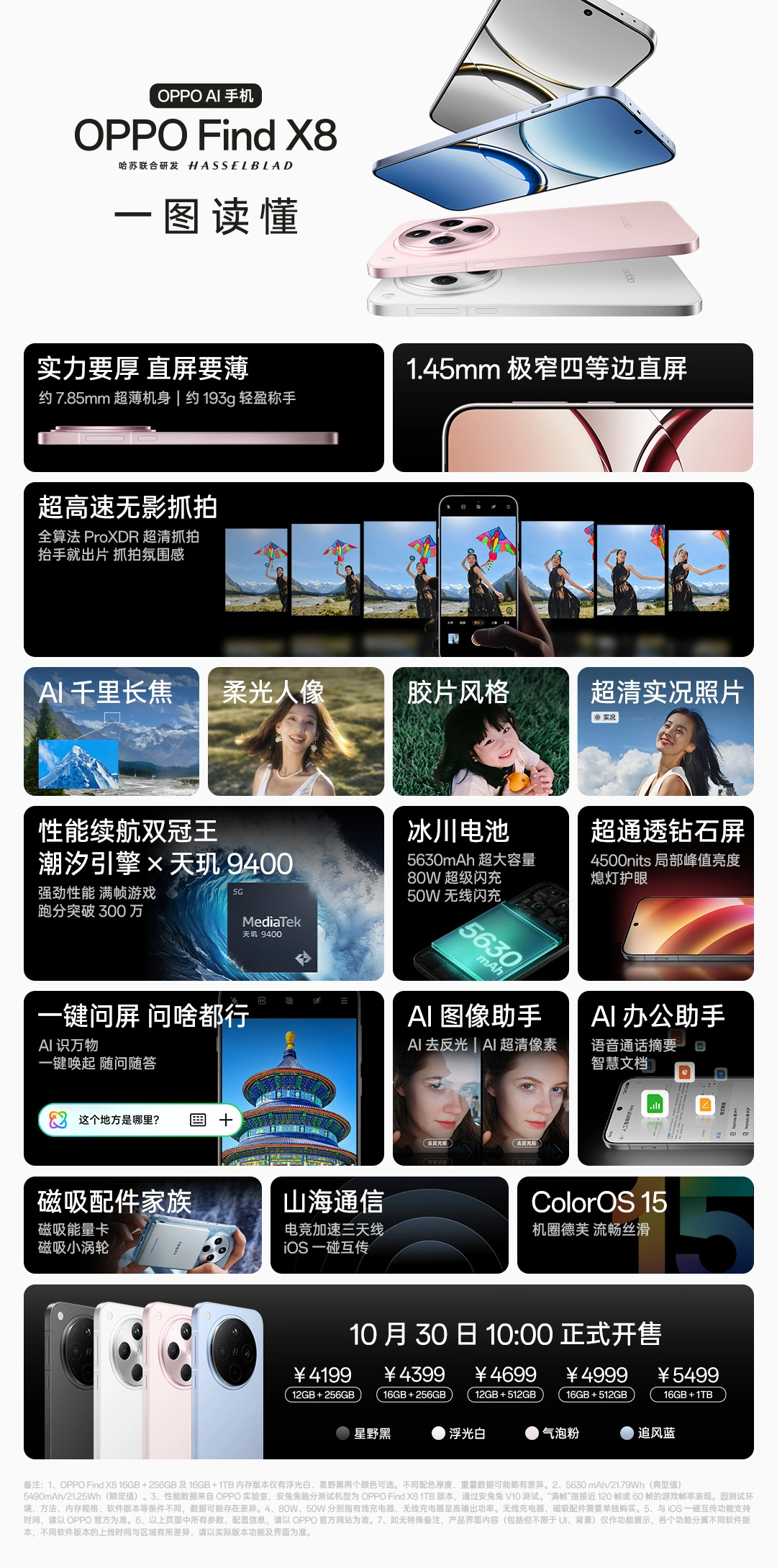去年 10 月 24 日举行的发布会上,OPPO Find X8 系列手机正式发布,10 月 30 日正式开售,各版本售价如下: