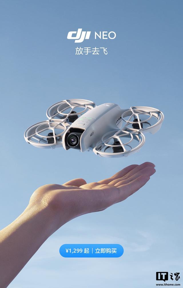 IT之家注:大疆 NEO 无人机于去年 9 月发布,标准版(不含遥控器)1299 元,畅飞套装 2299 元(含遥控器、三块电池、双向充电管家、桨叶保护套),其主打 AI 智能跟拍功能,支持渐远、环绕、冲天等多种智能拍摄模式。