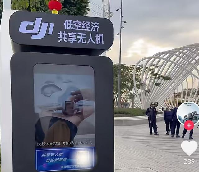 例如在南京滨江公园,就有网友拍到了共享无人机的机柜,里面有 5 架无人机,费用为每分钟 3 元。一台无人机持续飞行时间可达 20 分钟,机柜内有充电口可以自行充电。