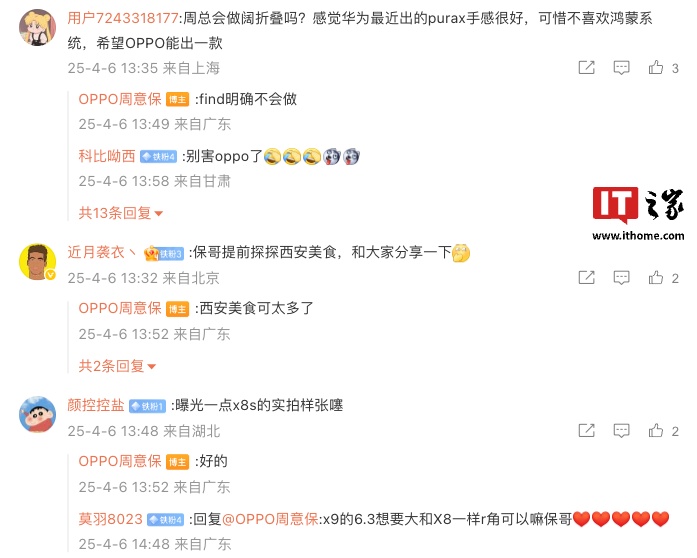 IT之家 4 月 6 日消息,OPPO Find 系列产品负责人周意保今日在微博与用户展开互动。有用户询问 OPPO 是否会推出“阔折叠”手机,周意保表示“Find 明确不会做”。