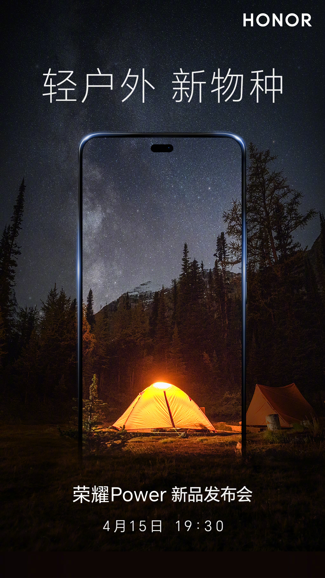 IT之家 4 月 7 日消息,荣耀手机官微今日宣布,定位“轻户外手机”的新品荣耀 Power 将于 4 月 15 日 19 时 30 分正式发布。