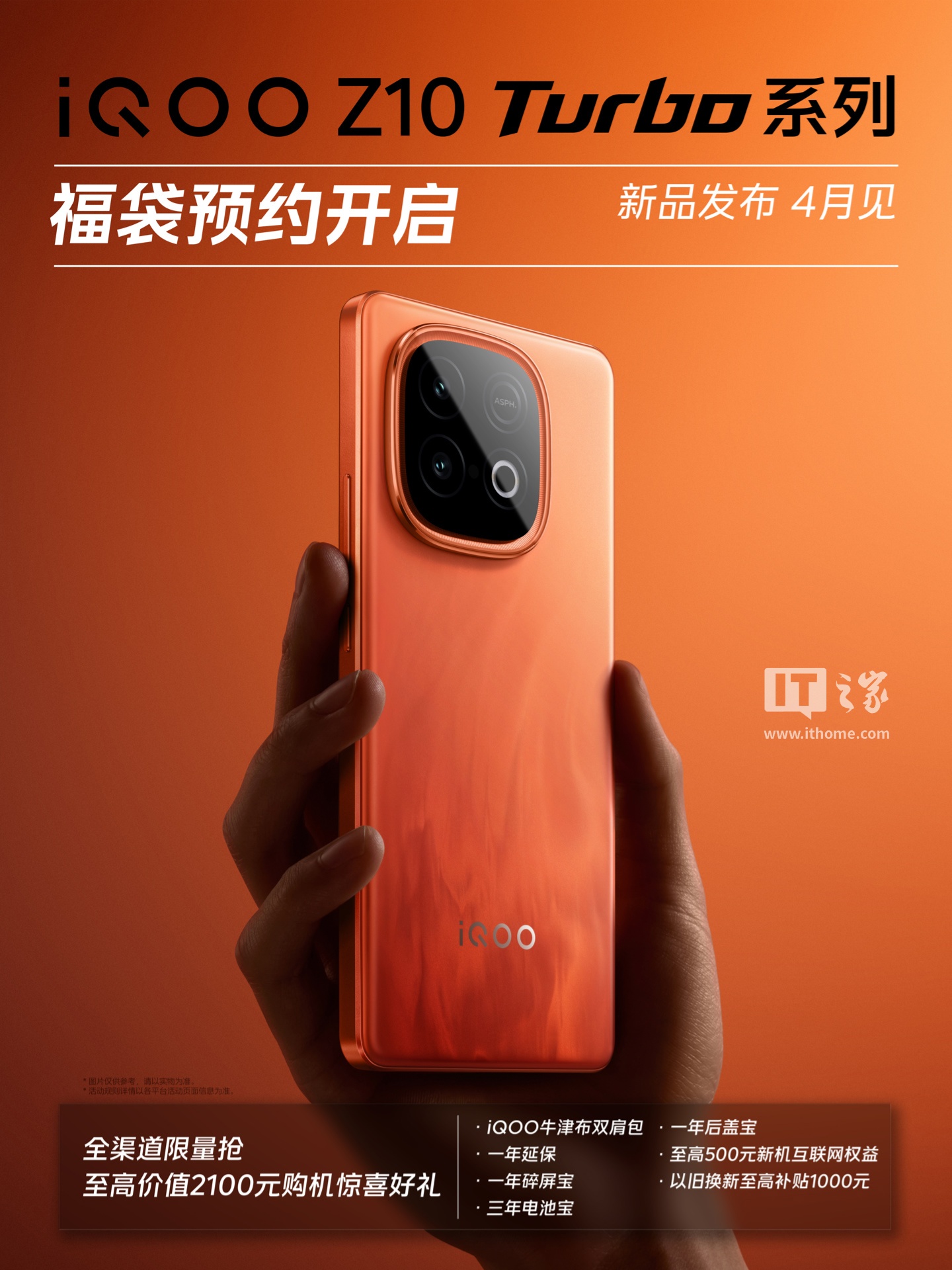 IT之家 4 月 7 日消息,iQOO 手机官方今日公布了 Z10 Turbo 系列机型外观(具体型号未说明)。系列新机已开启预约,将于本月发布。