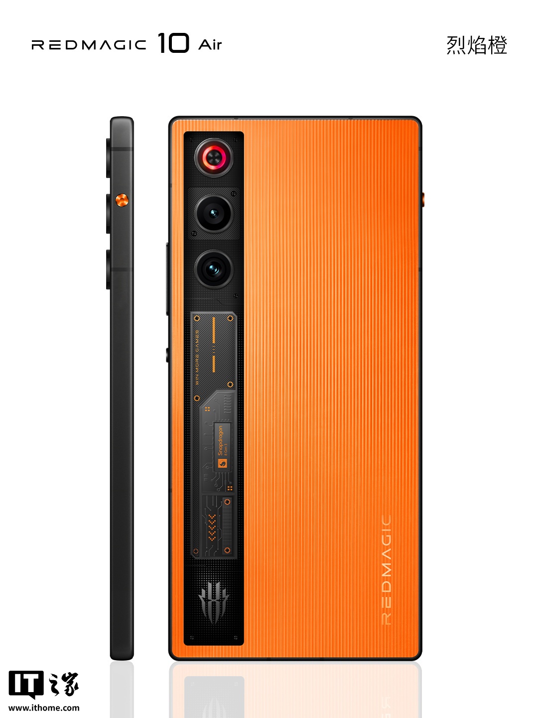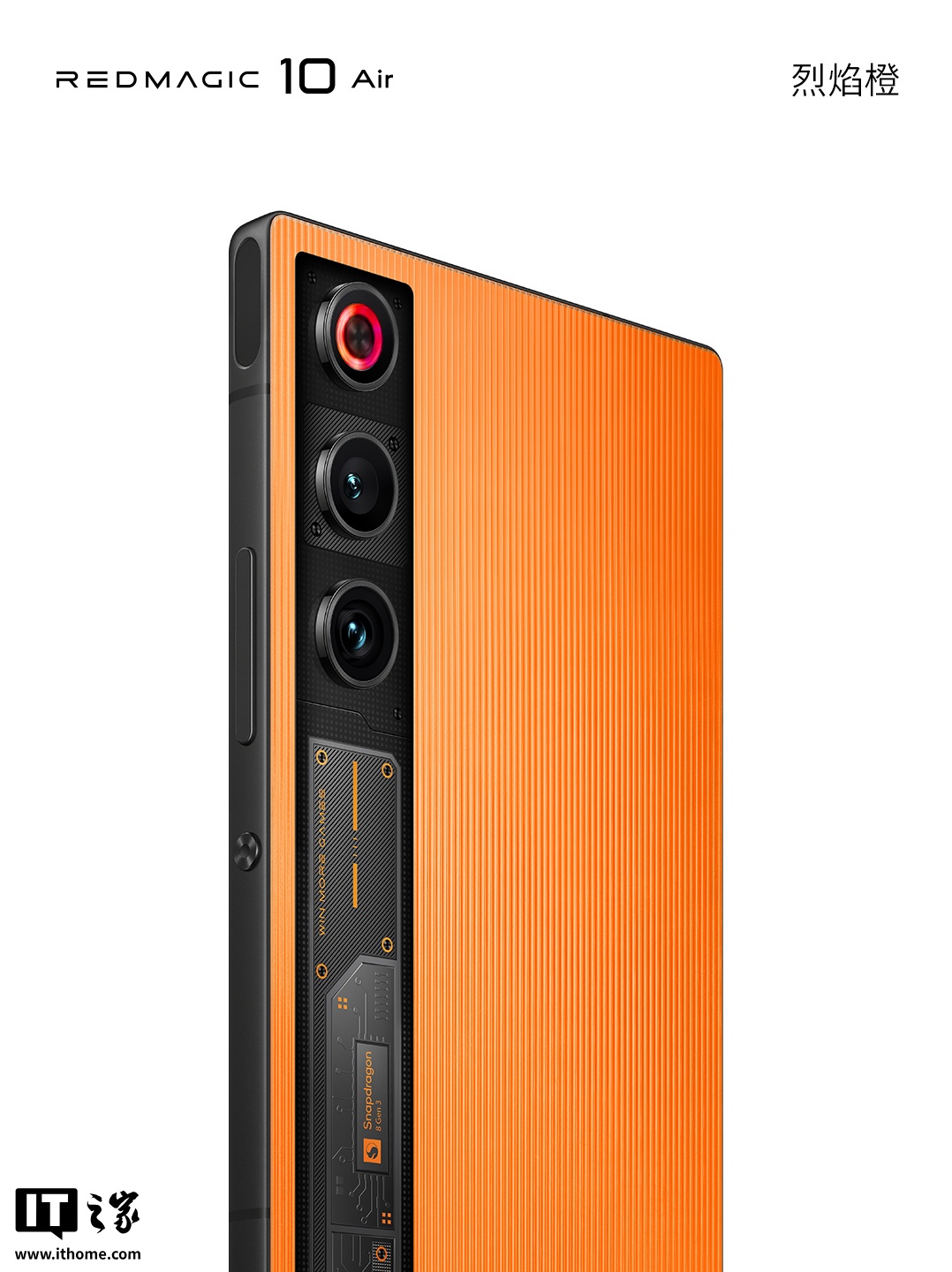 IT之家 4 月 9 日消息,红魔 10 Air 手机的外观已正式公布,提供疾影黑、霜刃白和烈焰橙三种配色,该机将于 4 月 16 日 15:00 正式发布。