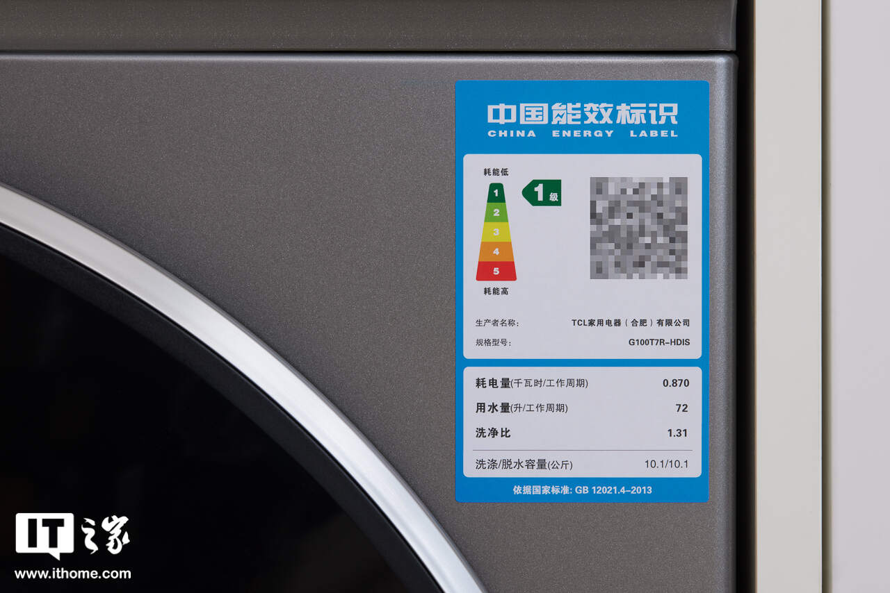 如上图,每台洗衣机的“中国能效标识”标签底部都标有洗净比参数,每款洗衣机上市前都会有相关的检测。而 TCL AI 超级筒洗烘一体机 T7R Pro 再度突破极限,将洗净比提升至 1.31,创下了行业新高。