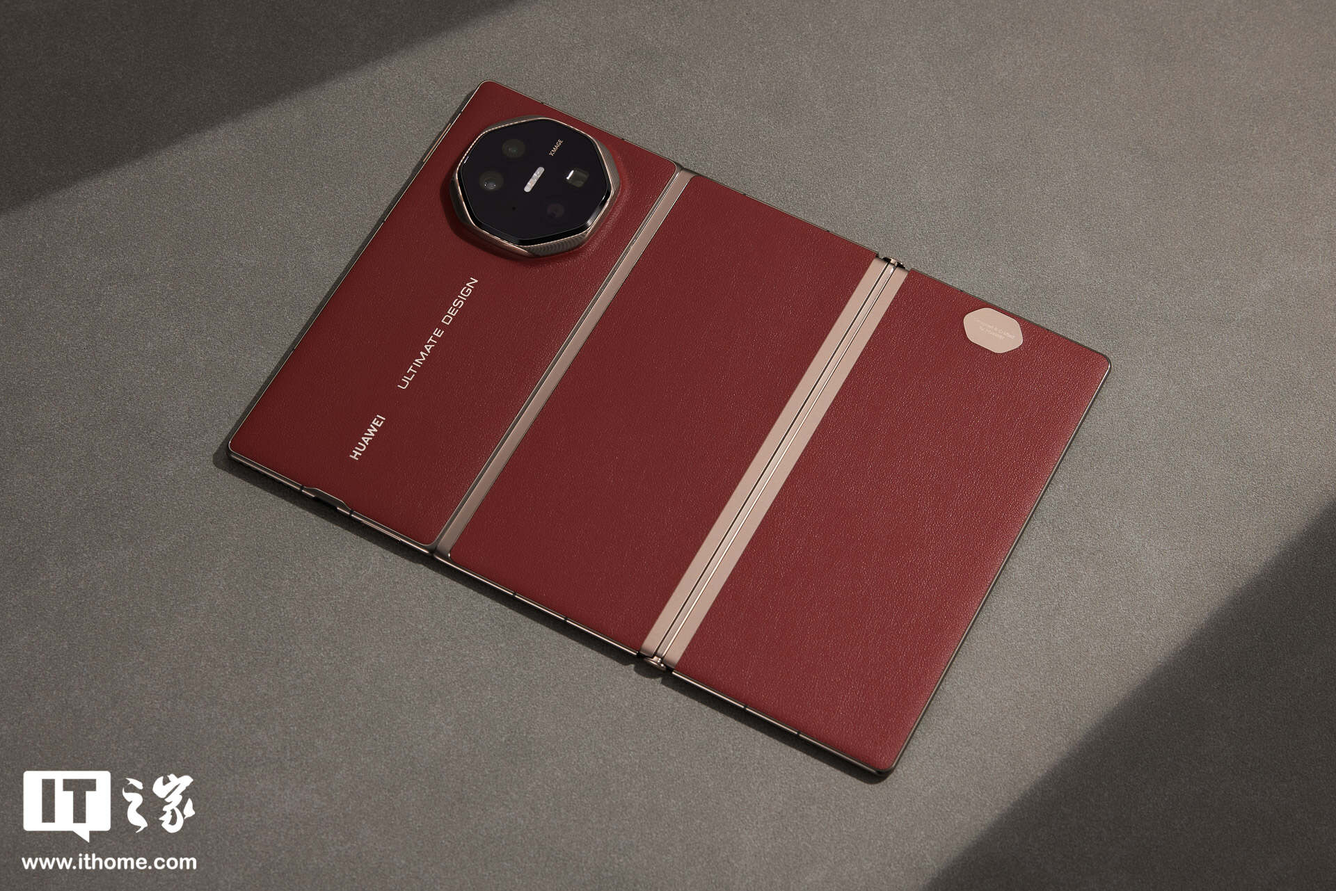 华为 Mate XT 非凡大师提供瑞红、玄黑两款配色,首次实现了铰链内外弯折,搭载“华为天工铰链系统”。新机三屏态薄至 3.6 mm,单屏态厚度 12.8mm,配备 10.2 英寸手机折叠屏。
